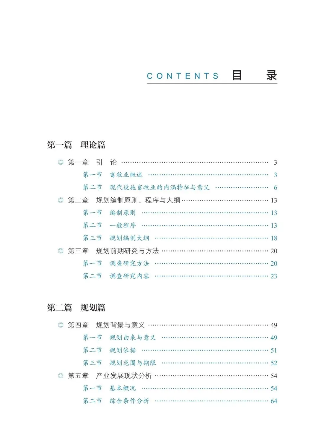 本书分为理论篇、规划篇和案例篇三个篇章。理论篇系统阐释了畜牧业产业特征、发展历程以及发展现代设施畜牧业的重要意义,总结说明了规划编制的一般原则、程序、大纲和规划前期研究方法。规划篇按照总体规划的一般框架,分别对规划的背景和意义、产业发展现状分析、市场分析与预测、总体规划方案、重点任务、重点工程与项目、保障措施等章节的编写方法分别进行了论述。本篇各章节内容组合在一起,就构成了一个系统性、相互配合的整体规划报告。案例篇精选了农业农村部规划设计研究院编制的五个典型案例,每个案例均从规划评述、规划目录和精选章节三个方面进行介绍,为读者提供直观、生动、极具借鉴意义的实践范本。