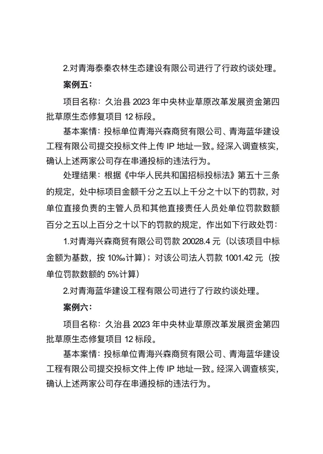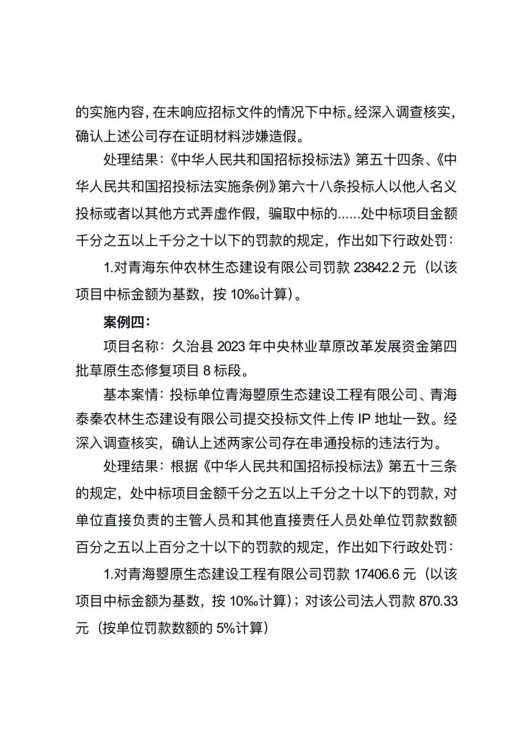 久治县自然资源和林业草原局关于林草工程招标投标领域违法违规6起典型案例的通报