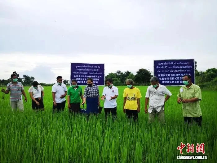 图为中国(广西)—老挝农作物优良品种试验站在老挝推广水稻绿色增产技术。广西农业农村厅供图