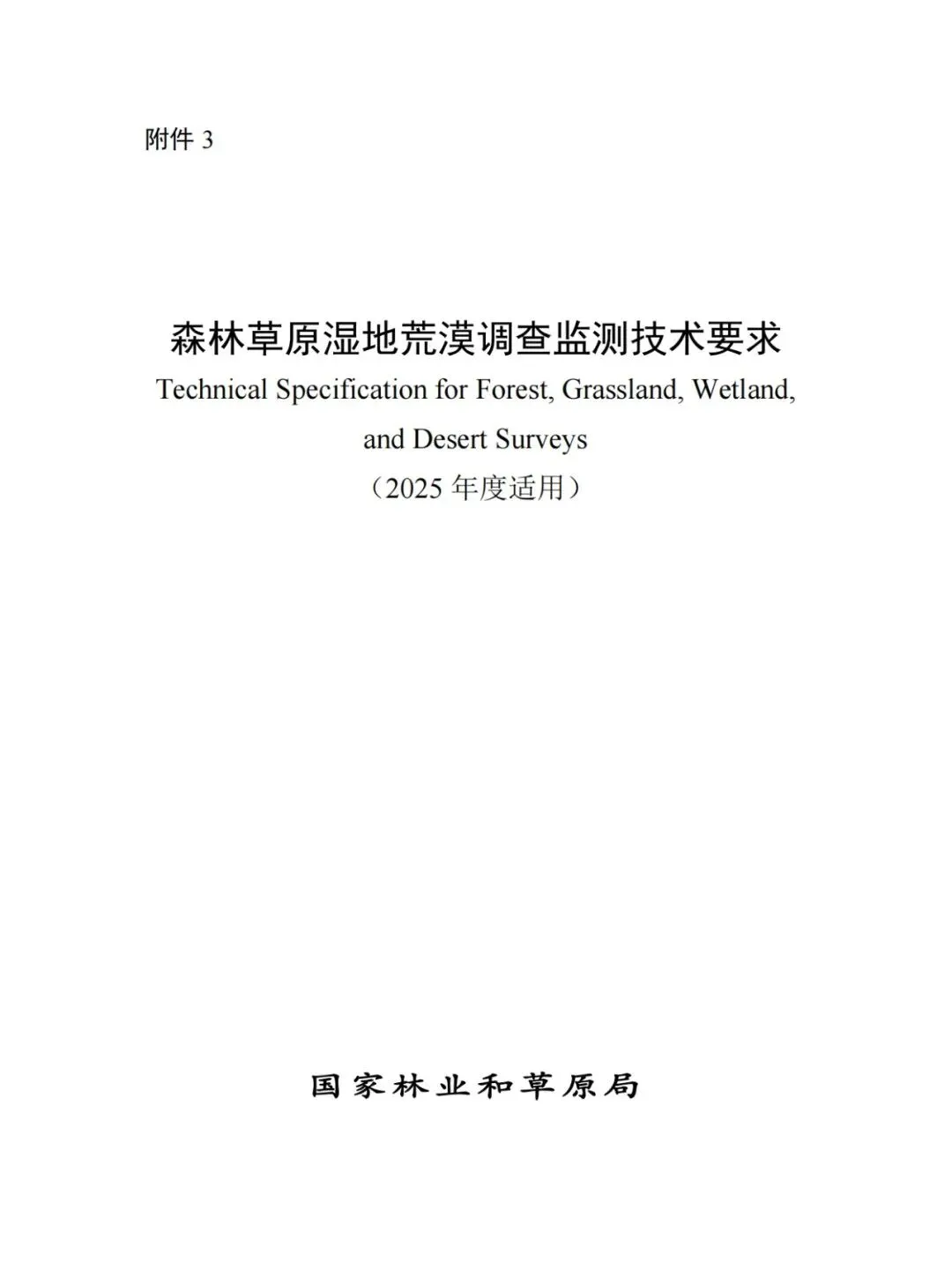 国家林业和草原局发布 关于森林草原湿地荒漠调查监测技术要求(2025年度)
