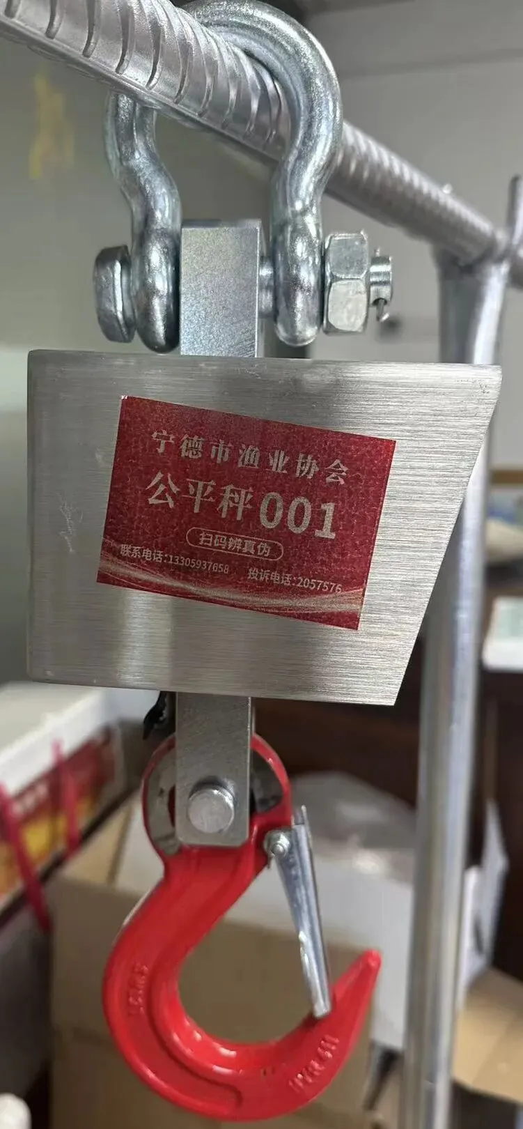 为确保该秤公平、公正,我会设立投诉电话2057576,对该秤使用有异议可向协会投诉,我会将及时处理。借秤联系电话:上班时间2099990,非上班时间13305937658预约。地点:宁德市渔业协会(宁德市蕉城区万安西路27号夏威大厦612)。