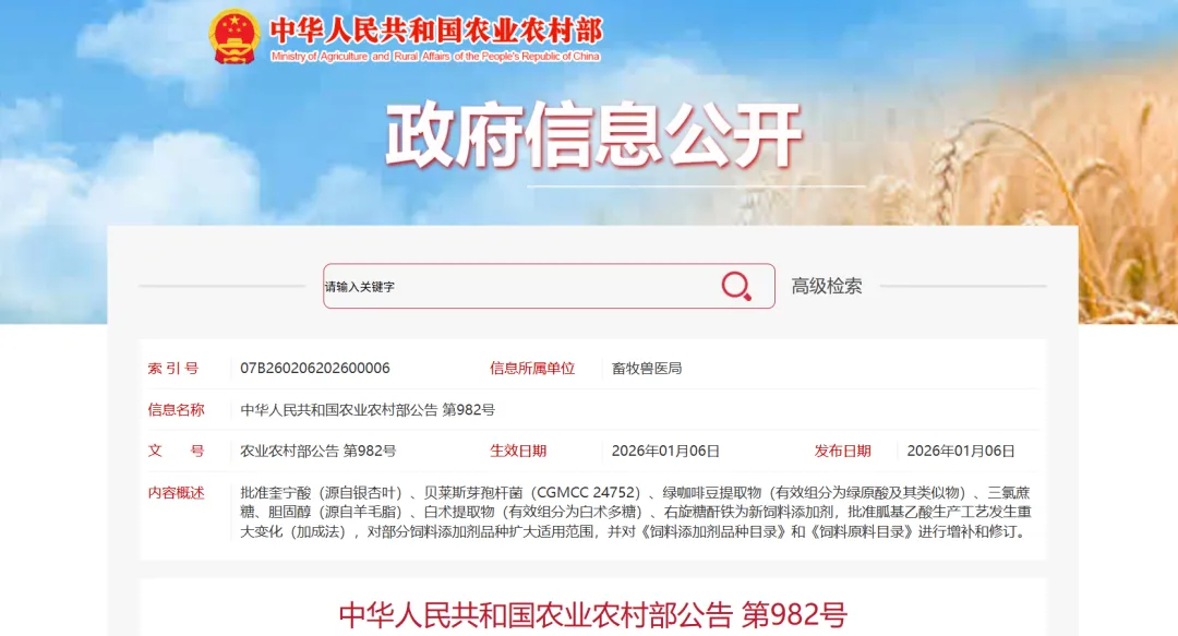 依据《饲料和饲料添加剂管理条例》和《新饲料和新饲料添加剂管理办法》,农业农村部组织全国饲料评审委员会对申请人提交的新饲料和新饲料添加剂产品申请材料进行评审,决定批准7个新饲料添加剂品种,1个饲料添加剂品种生产工艺发生重大变化,8个饲料添加剂品种扩大适用范围,并对《饲料原料目录》进行增补和修订。现将有关事项公告如下。