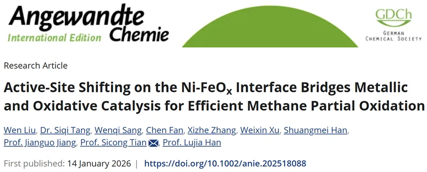 Wen Liu, Dr. Siqi Tang, Wenqi Sang. et al. Active-Site Shifting on the Ni-FeOx Interface Bridges Metallic and Oxidative Catalysis for Efficient Methane Partial Oxidation. Angew. (2025).