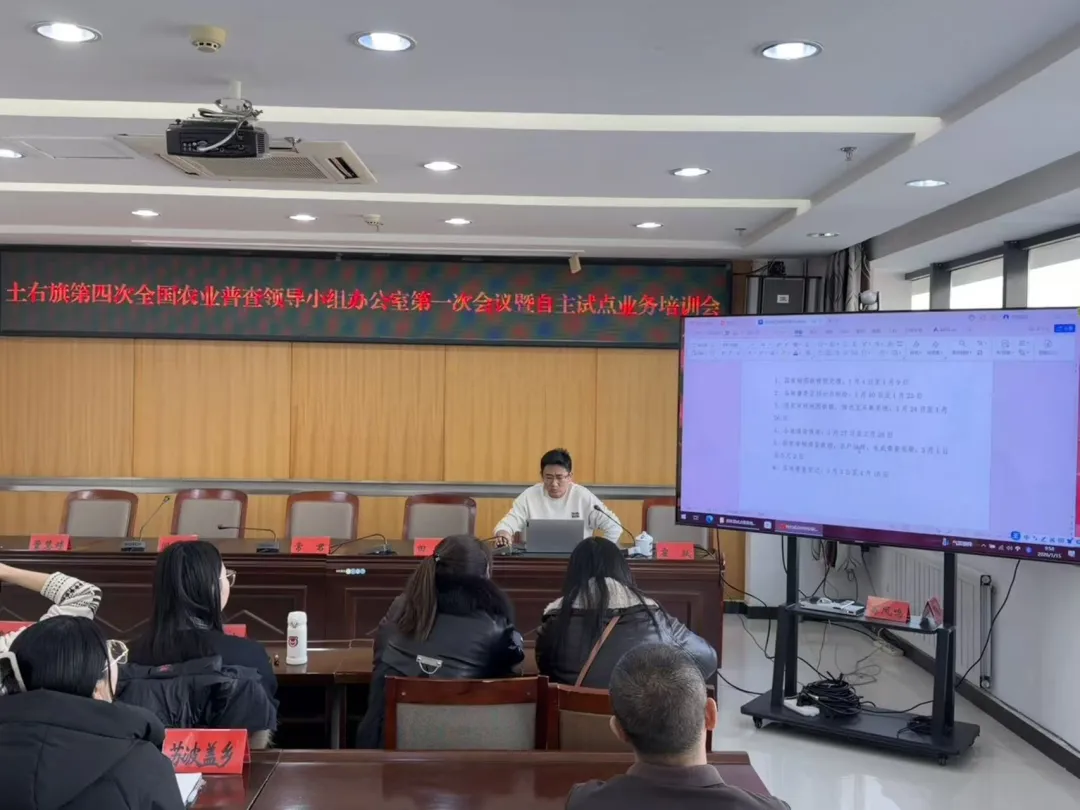 为扎实推进全旗第四次全国农业普查工作,夯实普查业务基础,土默特右旗第四次全国农业普查领导小组办公室于1月15日组织召开全旗第四次全国农业普查领导小组办公室第一次会议暨自主试点培训会。包头市统计局普查中心主任田静、农牧业调查科董慧婷受邀参加,旗农普领导小组办公室主任、统计局局长常君出席会议并作讲话,旗统计调查中心主任闫中山主持会议。各乡镇、九管会分管领导、专业负责人、试点乡村“两员”,旗农普办全体工作人员参加会议。会议旨在全面部署第四次全国农业普查、自主试点工作任务,开展试点专项业务培训,确保自主试点工作高标准、高质量完成。