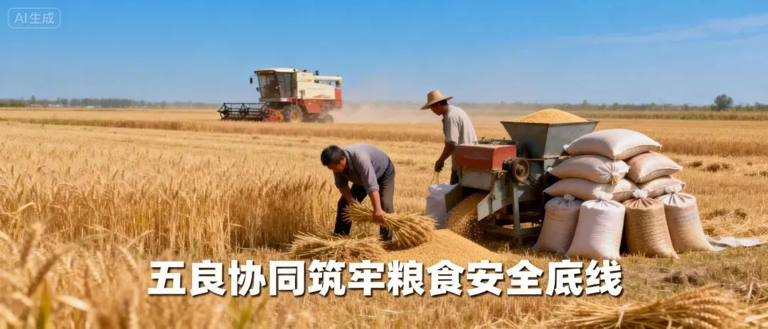 以“良田、良种、良法、良机、良制”五良协同,稳面积、提单产、优品质,推动粮食生产从“增产”向“提质增效”转变;建强农田水利、防灾减灾设施,让大国粮仓既“满”又“优”。