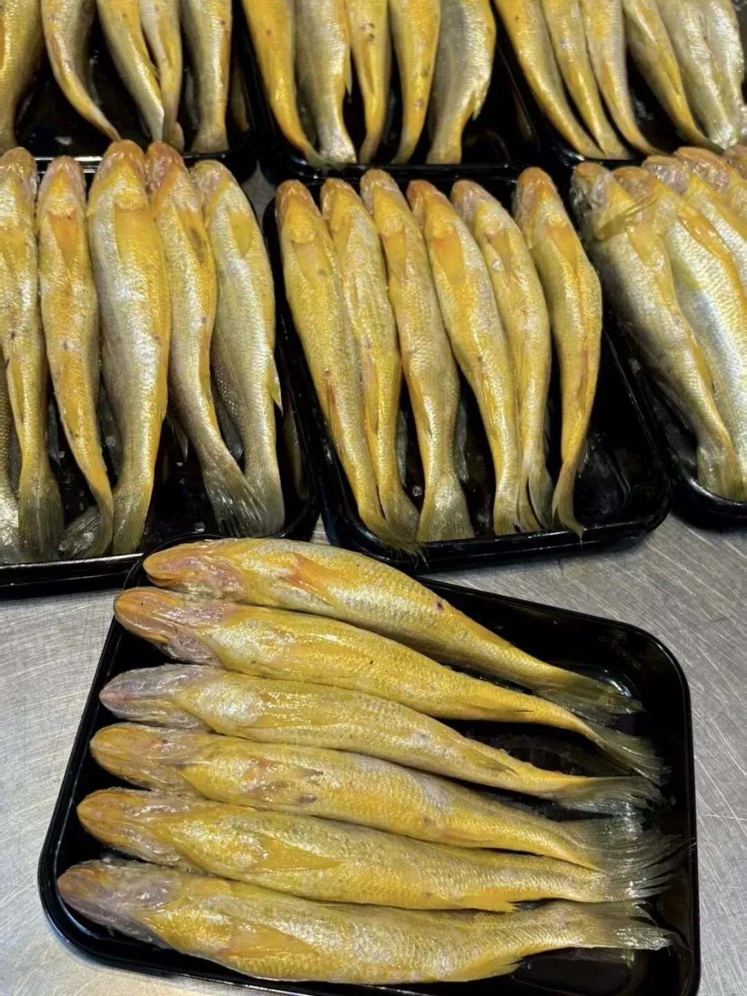 舟山渔场的143海区,是野生小黄鱼的“黄金产地”。这里寒暖流交汇,水质清澈低盐,海底养分上浮,浮游生物富集,让小黄鱼在自然生长中积累了浓郁的海洋鲜甜。渔民捕捞后1小时内完成初步处理,上岸后立即-40℃超低温速冻,锁住鱼肉水分与营养,再通过冷链运输直达餐桌,让远方的食客也能尝到“刚离水”的鲜味儿。