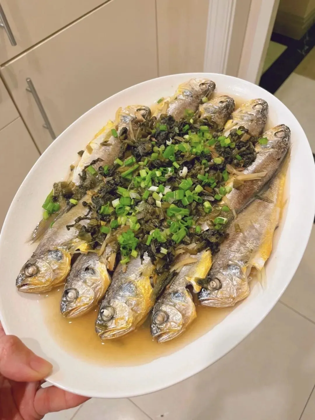 最能体现野生小黄鱼的鲜甜,鱼身处理干净后抹少许盐、淋1勺料酒,铺葱段姜片腌制5分钟,水开后蒸8-10分钟,倒掉腥水,撒葱丝淋热油激香即可,入口即化,老人小孩都爱吃。