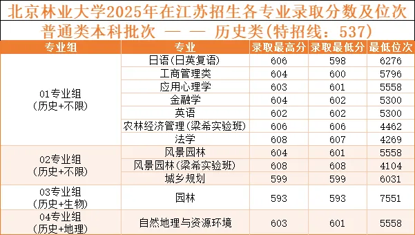 北京林业大学,2025年在江苏专业录取分数,一起来了解一下吧!