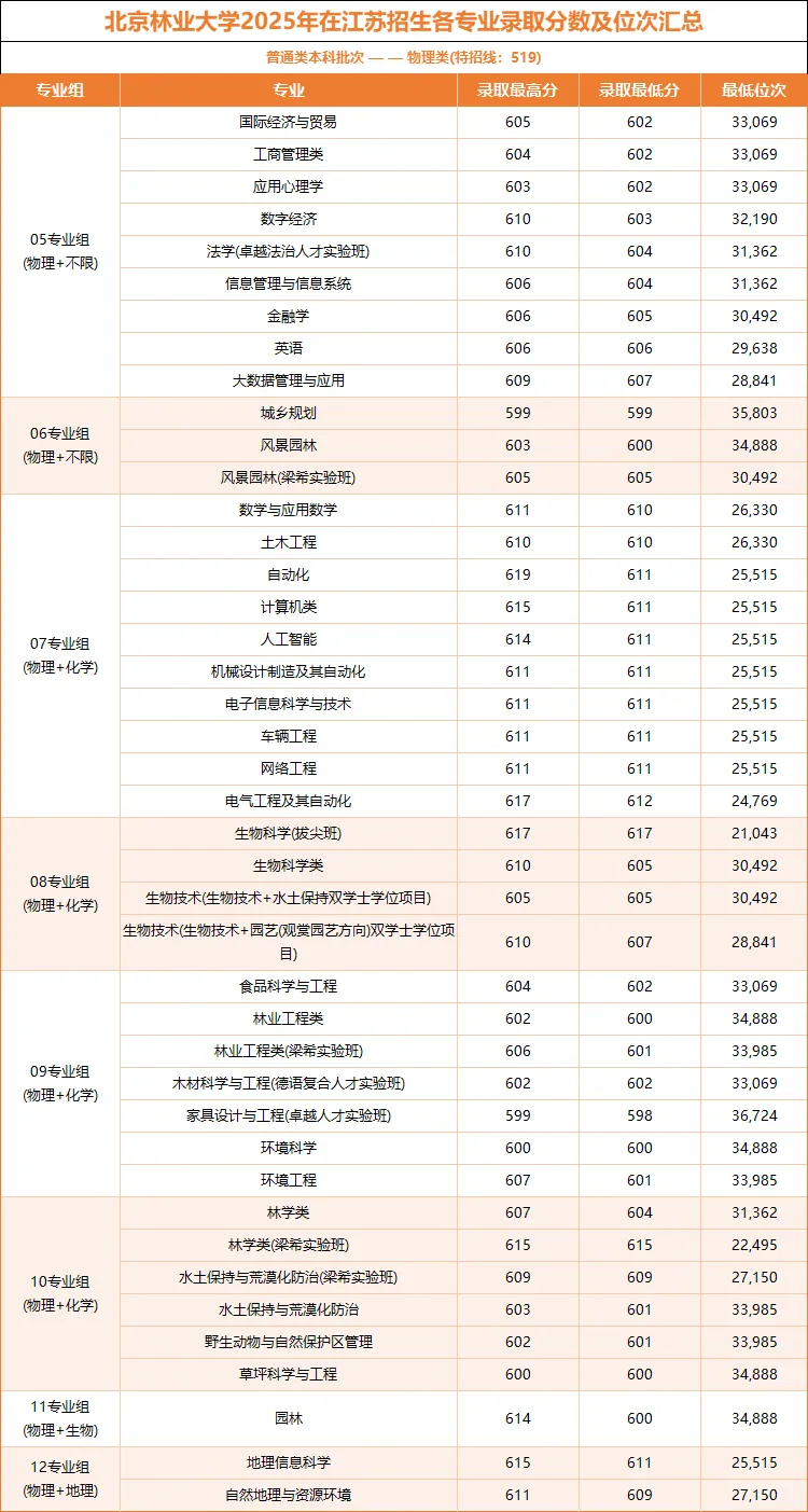 北京林业大学 | 最高分619分!2025年普通批各专业录取分数公布!