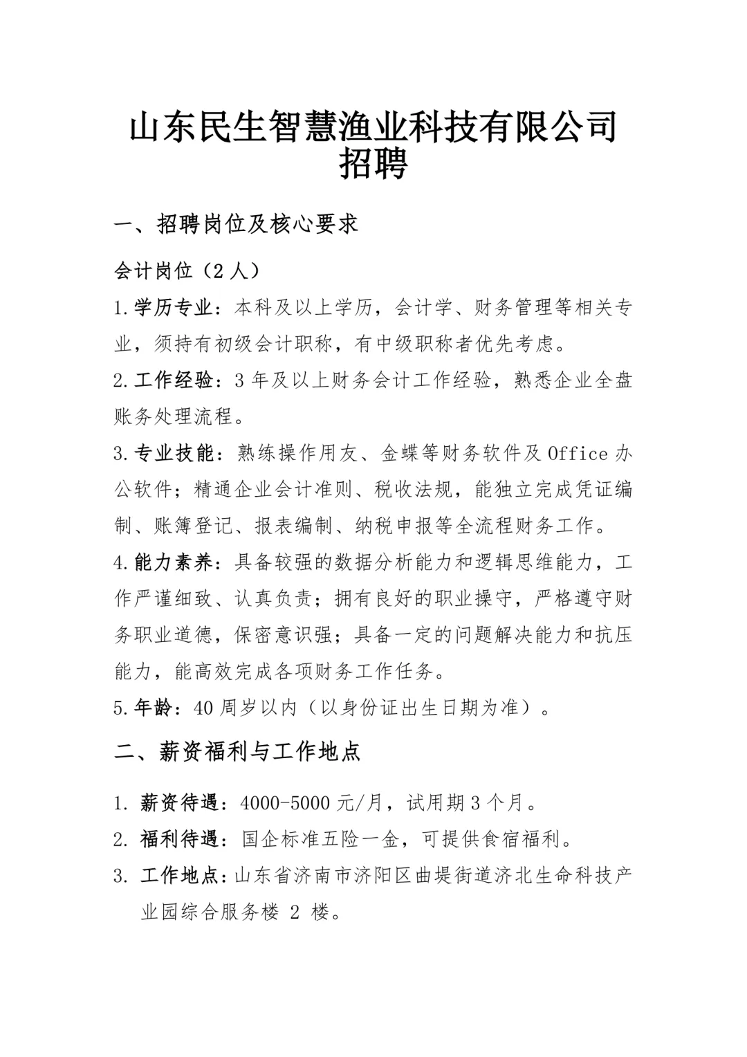 山东民生智慧渔业科技有限公司招聘信息