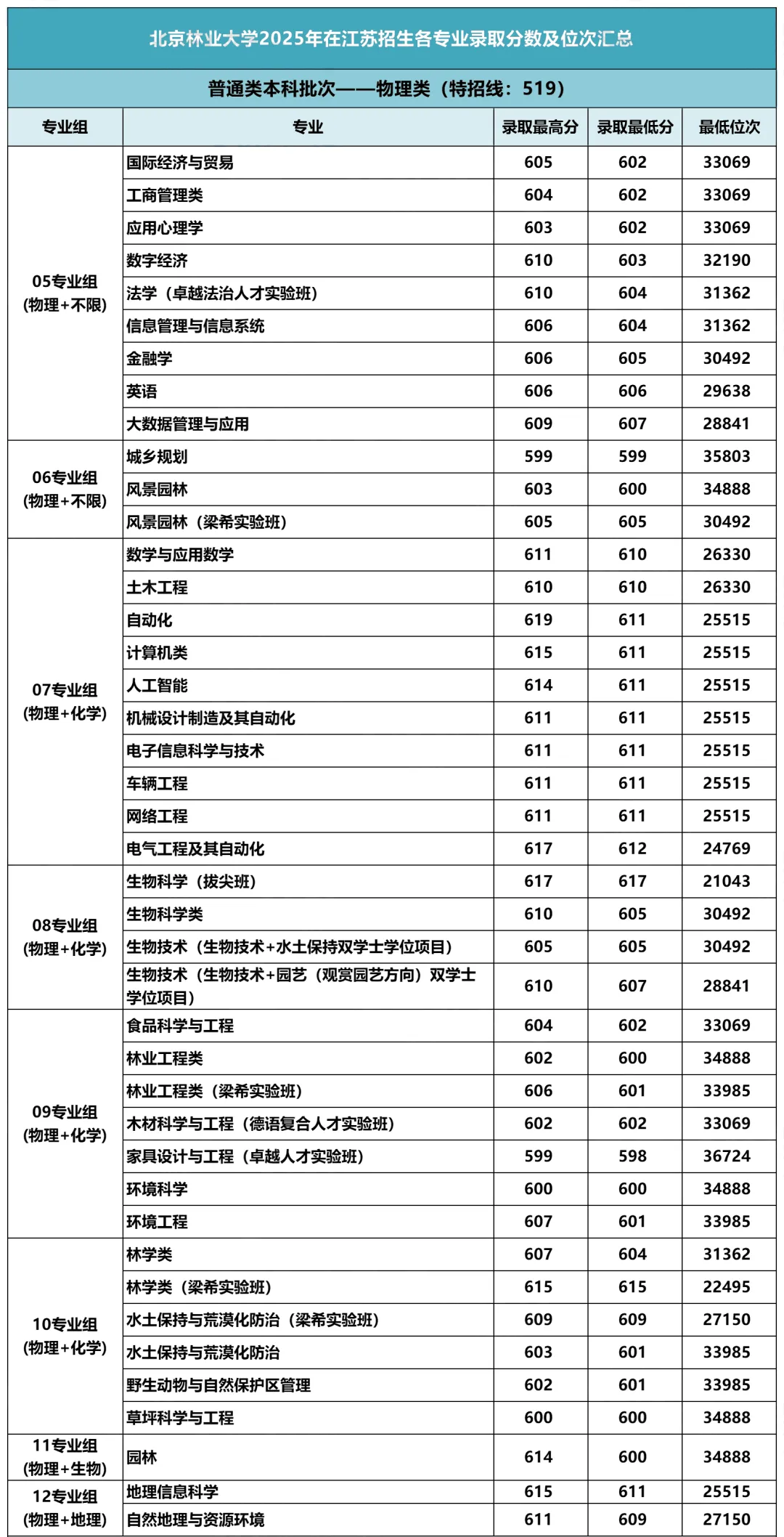江苏考生速查!北京林业大学 2025 录取分公布,物理类最高619分!