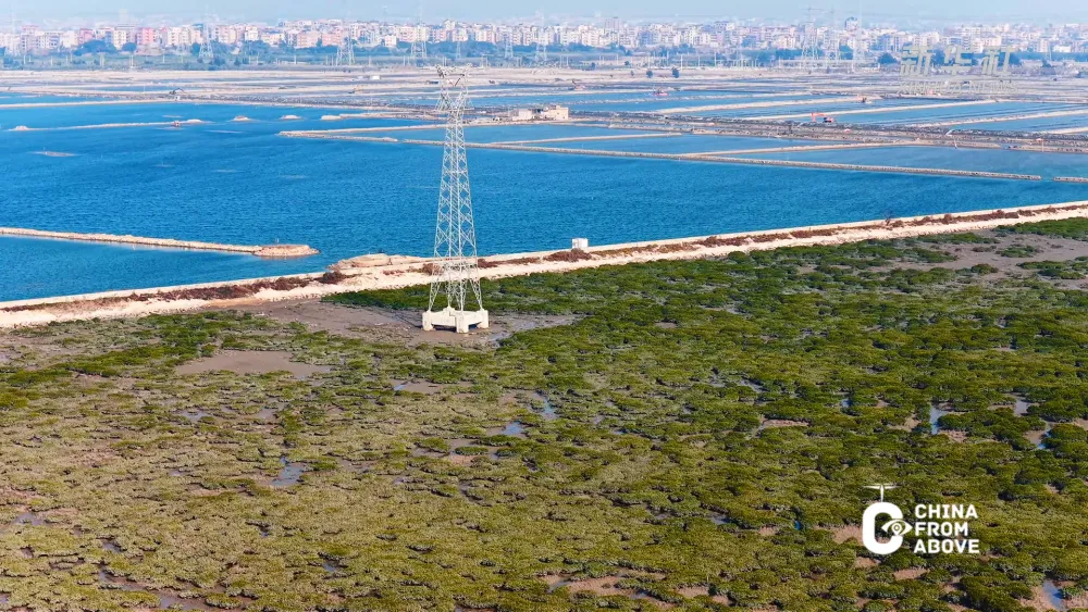 近日,在福建省福清市兴化湾港头镇段,国家一级保护野生动物黑脸琵鹭如约而至。在它们身后,红树林筑起绿色“长城”,南方碱蓬草为滩涂铺上“地毯”。