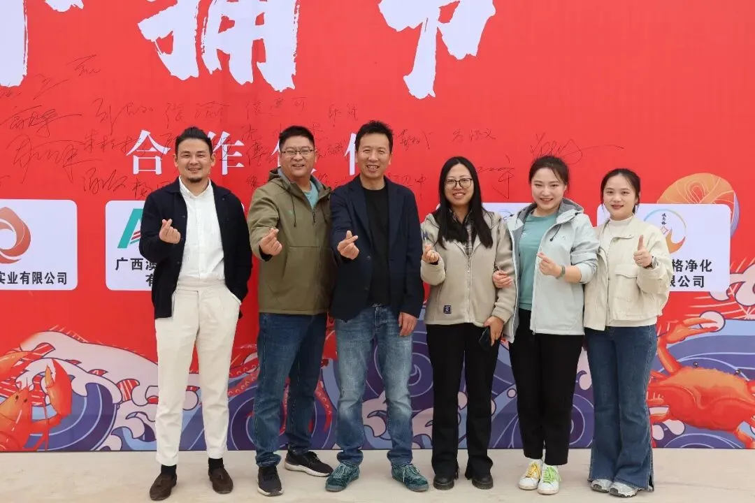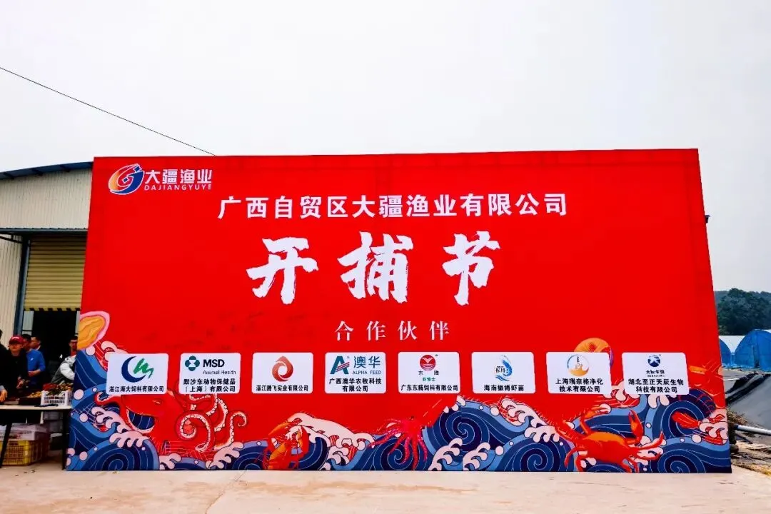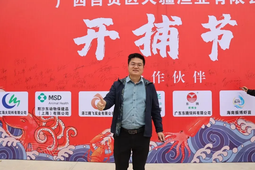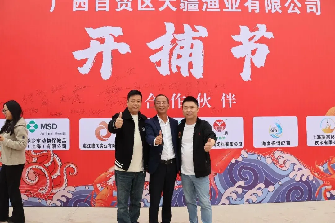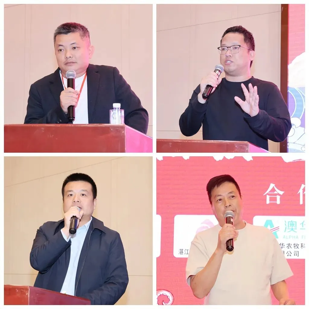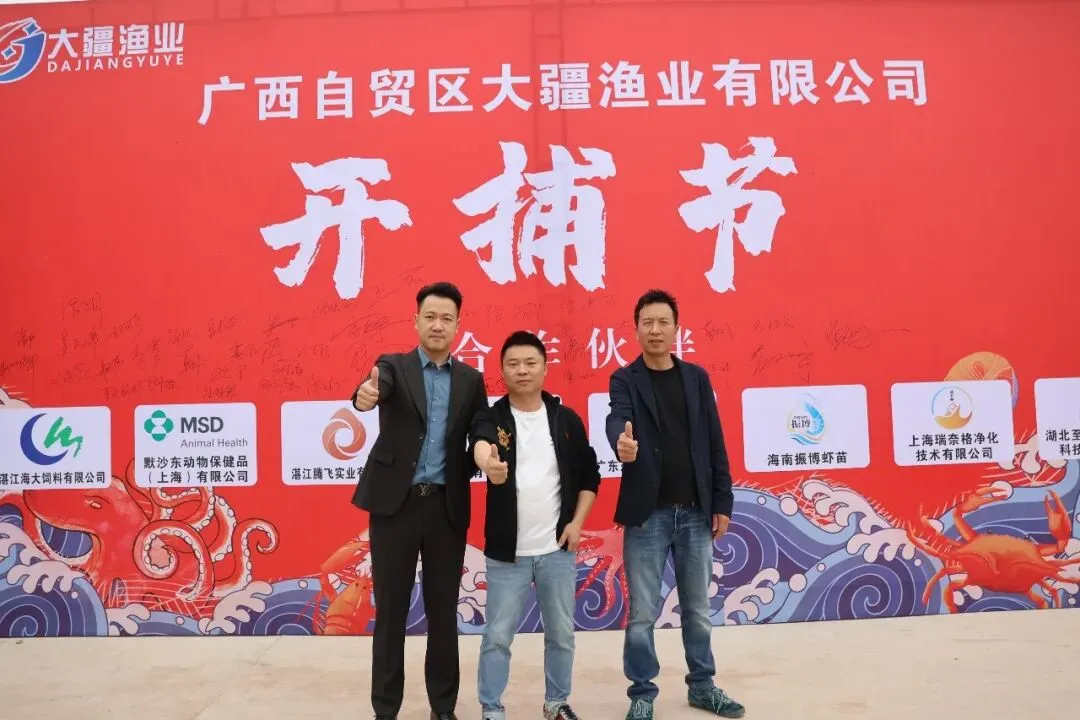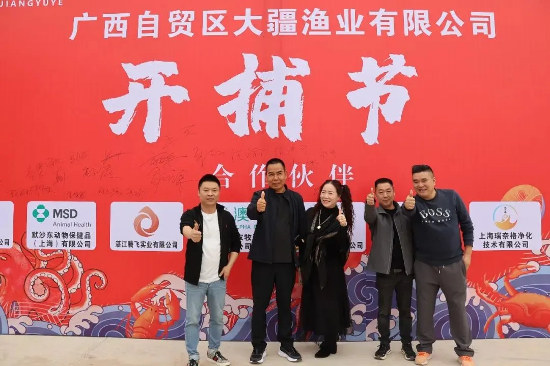 大疆渔业有限公司董事长高旭东、云南鱼跃龙门水产有限公司董事长王一鸣、云南满堂运水产有限公司董事长杨国堂、广西傲超水产有限责任公司董事长周昕晖、广东上上生物科技有限公司总经理李方根、广西粤海饲料有限公司总经理廖建波、广西澳华农牧科技有限公司总经理邹峰、默沙东动物保健品(上海)有限公司市场部经理唐靓、广东东腾饲料有限公司总经理符广才、苏州漾海农业科技有限公司阳江分公司董事长沈小杰、台山市聚利水产有限公司总经理朱松松、江门亿原水产有限公司总经理吕晓斌、江门隆城水产有限公司总经理顾福旺等众多行业人士携手赴会,共同见证这一重要时刻。
