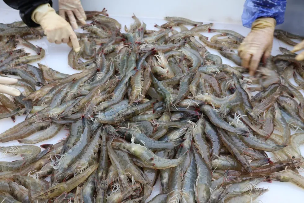 从养殖表现来看,这批中棚的实际效益完全超出预期。目前已有10多张中棚出虾,除3张棚受台风“麦德姆”影响产量略低外,其余中棚的单棚产量均稳定在8000斤以上,开捕仪式现场捕捞的这张中棚,产量更是突破10000斤,充分印证了中棚模式的优越性。