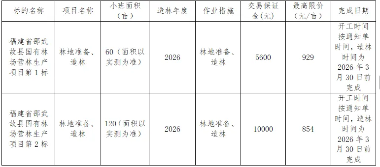 【林木所有权】20260122(周四)福建省宁化国有林场木材竞买交易项目