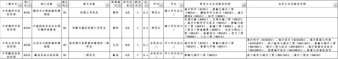 招录船舶电子电气工程、船舶与海洋工程等涉海专业的岗位截图如下