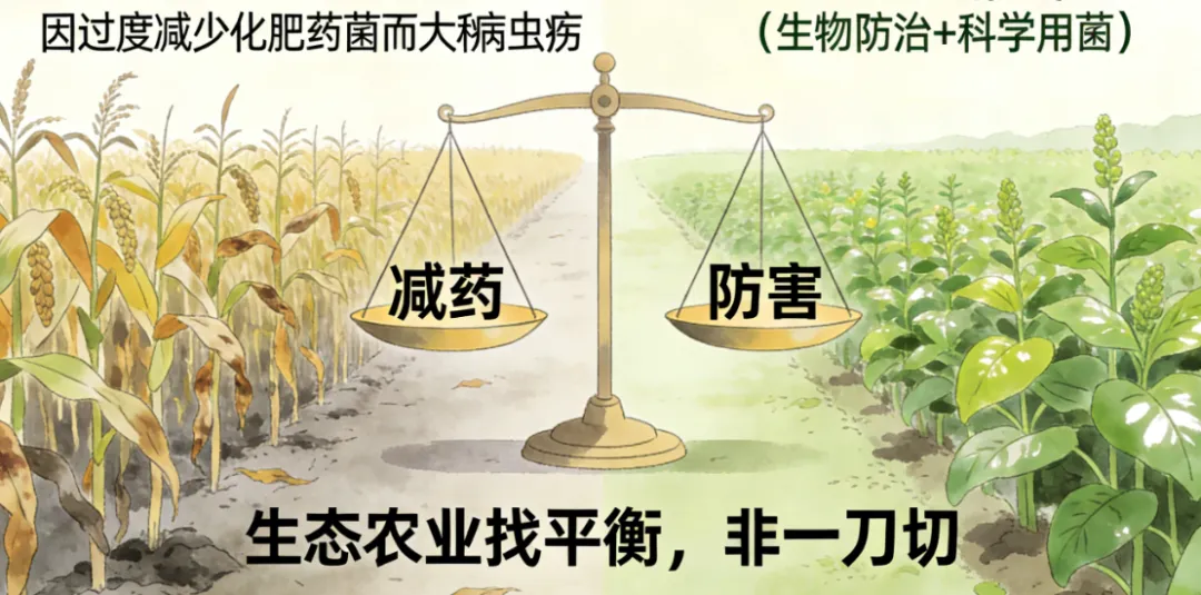 2. 生态红线:过度减化肥农药可能引发病虫害,完全不用又会导致减产,科学的方式是通过综合防治、生态农业找平衡,而非一刀切;