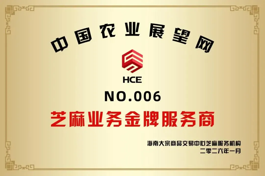 依托在农业领域多年积淀的专业能力与资源优势,中国农业展望网成为金牌服务商后,将进一步拓展服务边界,通过精准信息服务、专业市场分析及高效资源对接,助力海南大宗商品交易中心健全芝麻产业服务生态,为海南自贸港打造全球农产品资源配置核心枢纽、我国农业跨境贸易高质量发展注入强劲动力。