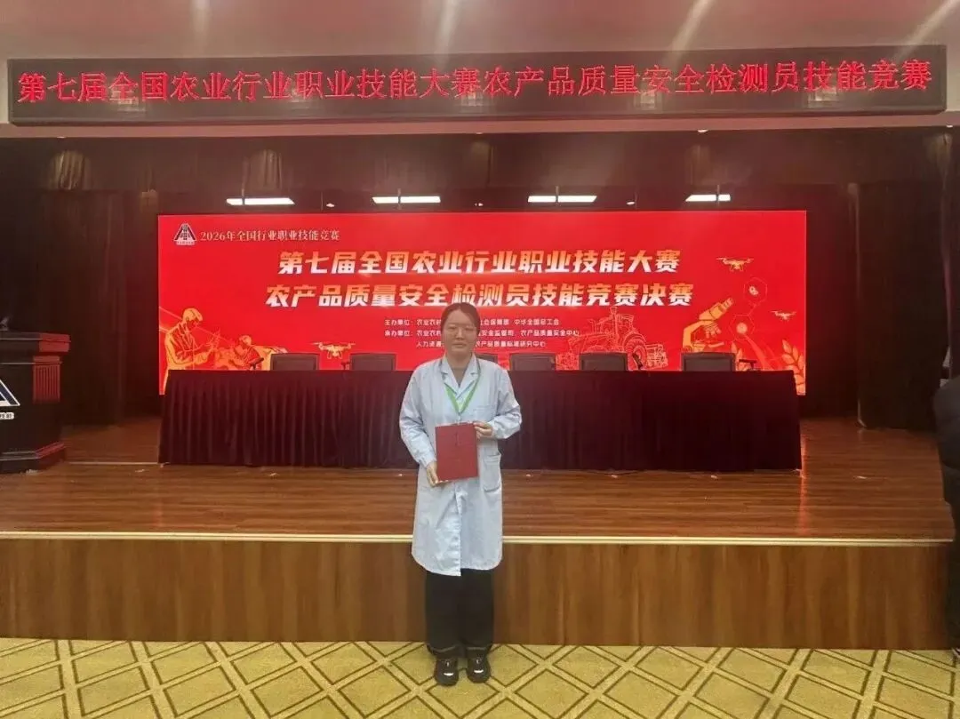 此次竞赛由农业农村部、人力资源社会保障部、中华全国总工会联合举办,来自全国各省(自治区、直辖市)和新疆生产建设兵团32支代表队、128名选手参加决赛。董洁琼同志凭借扎实的理论功底与精湛的操作技能脱颖而出,充分体现了中心在食品农产品质量安全检测人才培养方面的显著成效。