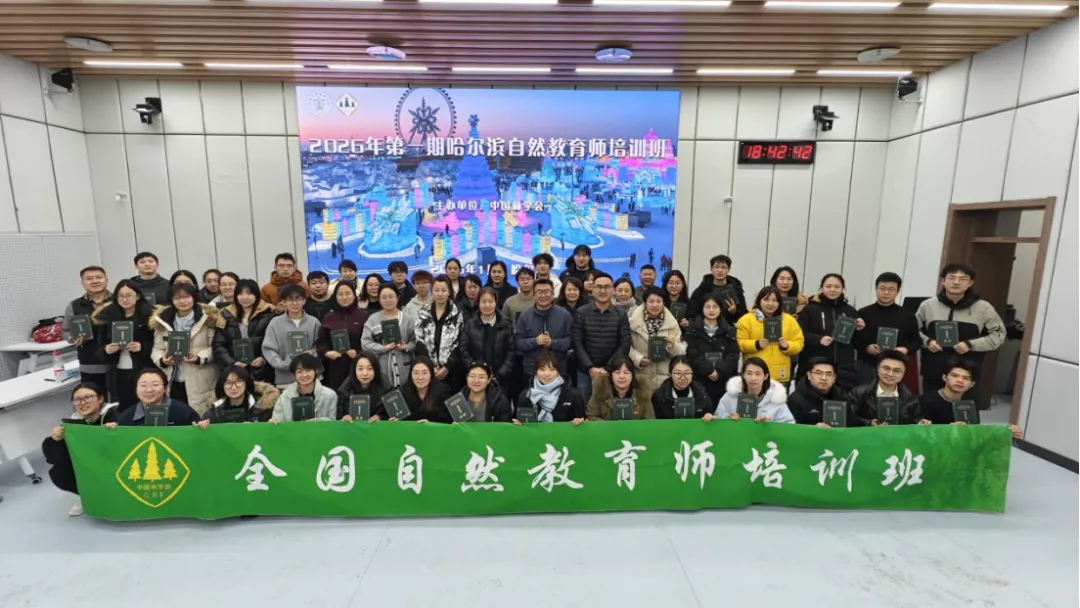 1月12日至14日,中国林学会2026年第一期自然教育师培训班在黑龙江省哈尔滨市东北林业大学成功举办。来自全国林业系统、教育机构、企业和自然保护区的六十余名学员参加培训。东北林业大学客座教授郭玉荣、营趣自然创始人员旭阳、东南大学副研究员张燕宁、北京大学研究员王彬等来自不同专业背景的权威专家担任讲师。