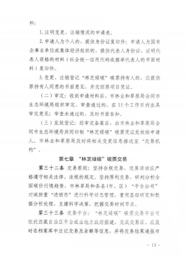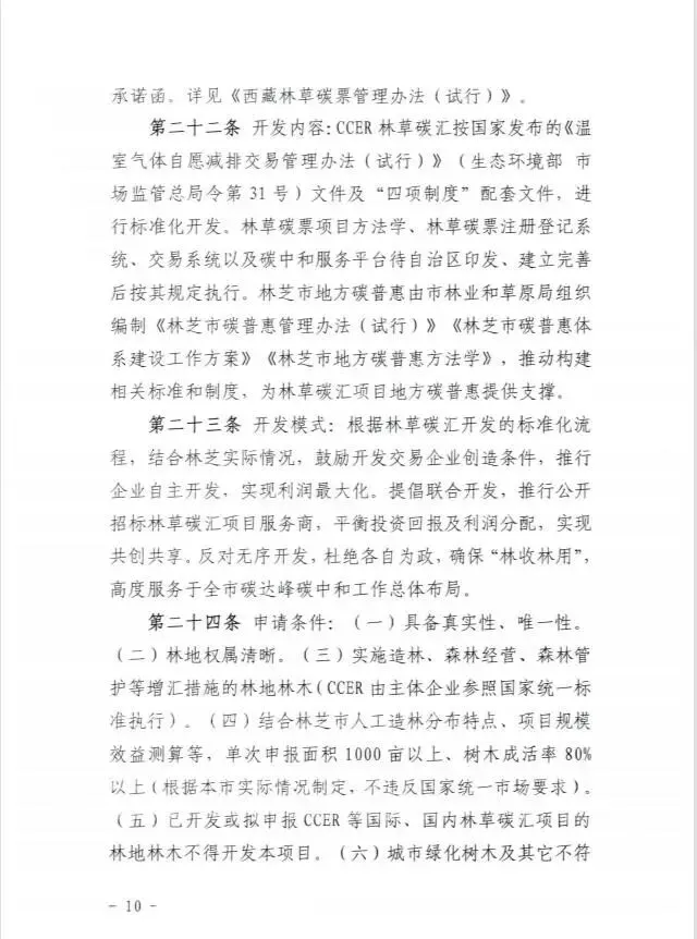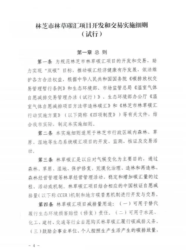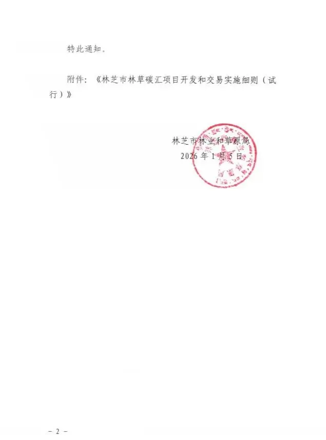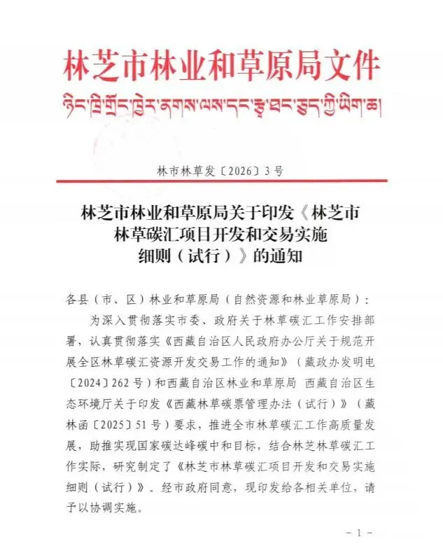 >林芝市林业和草原局关于印发《林芝市林草碳汇项目开发和交易实施细则(试行)》的通知