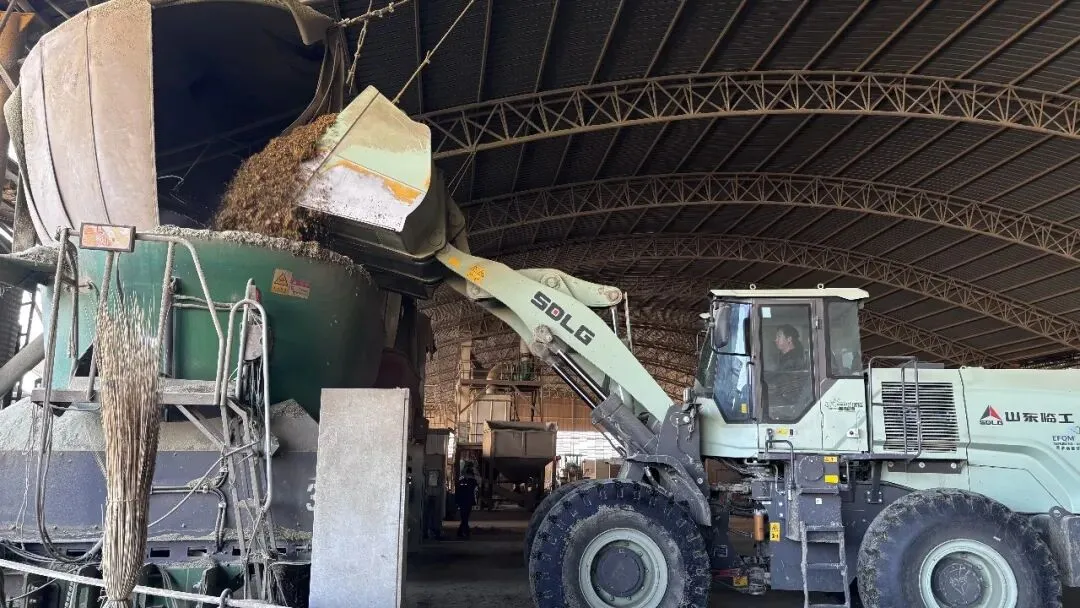 冬日的暖阳下,宁夏塞上牧源养殖场内一派繁忙有序的景象。走进饲草制作仓库,空气中弥漫着浓烈的饲料味道,新鲜开窖的玉米青贮,整齐码放的苜蓿、饲用燕麦草等优质饲草堆成了“小山”。自动化配料设施高速运转,精准的饲喂系统让每一头牛都能享受到科学配比的“营养餐”。