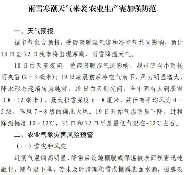 1月16日,枣庄市气象局、枣庄市农业农村局联合发布农业气象灾害预警。具体内容如下: