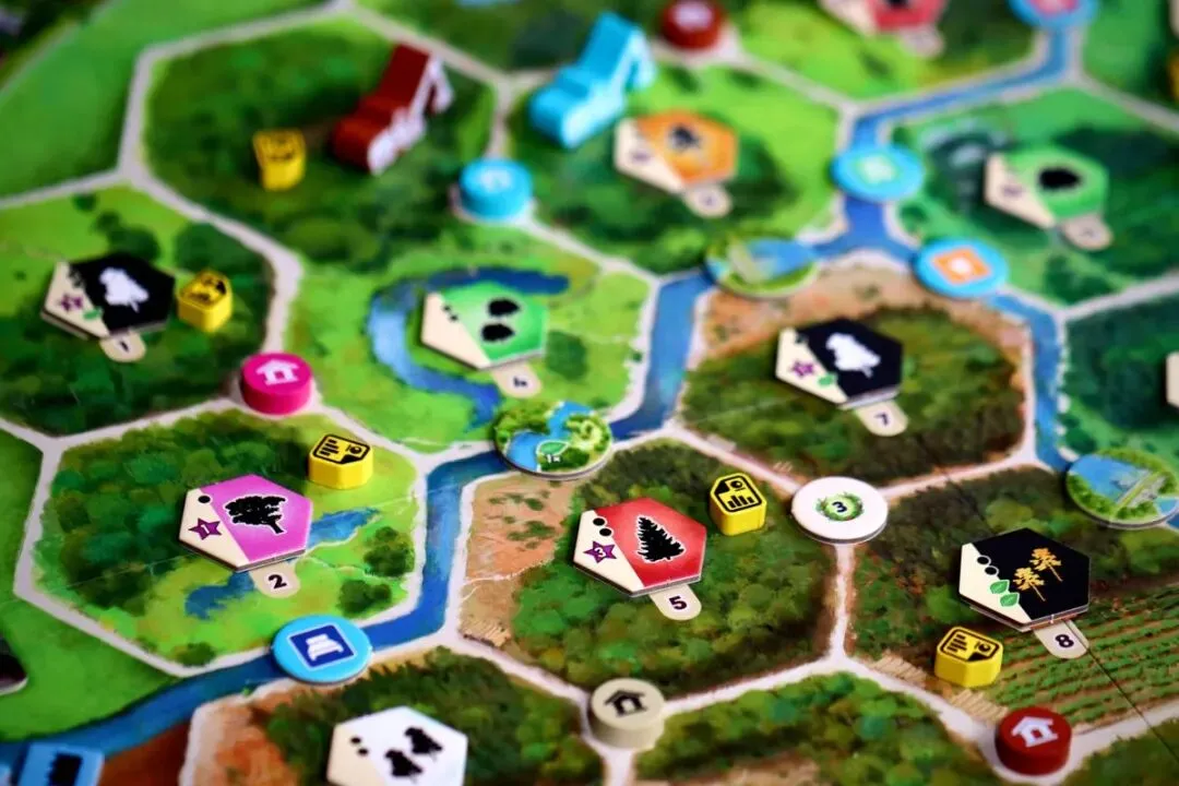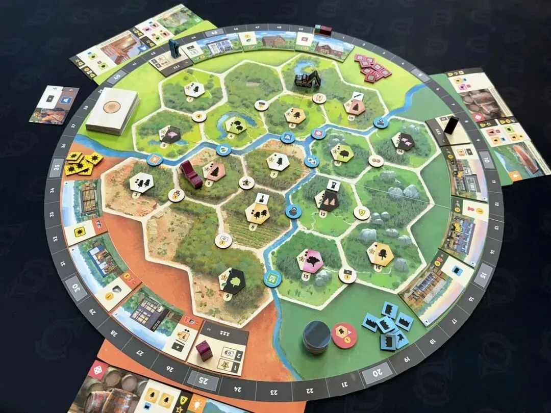 游戏结束时,根据建造的建筑数量、水利设施得分、完成的任务卡、护林员标记排名、剩余资源和木材计算总分。