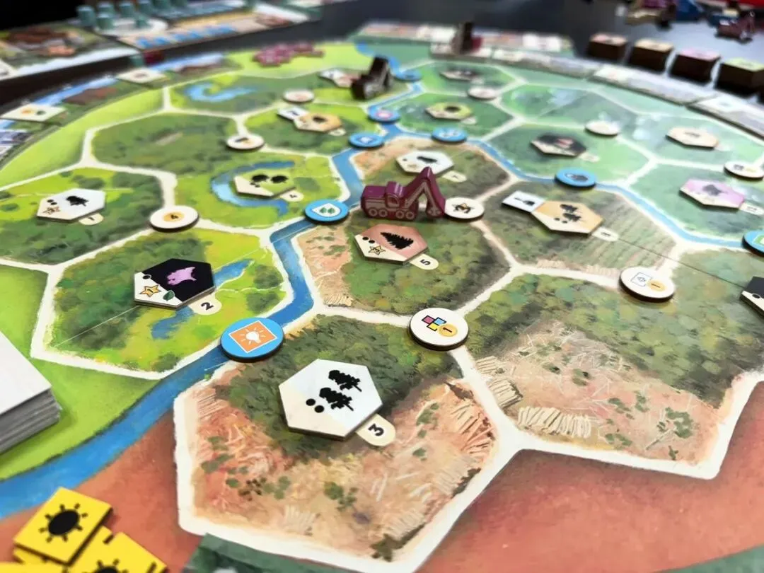 二是“一个地块只能有一台收割机”的规则。由于每名玩家仅有一个收割机,因此不会彻底将别人卡死,但也创造了有趣的“堵车”时刻(是等待、选择次优行动还是转向?)。