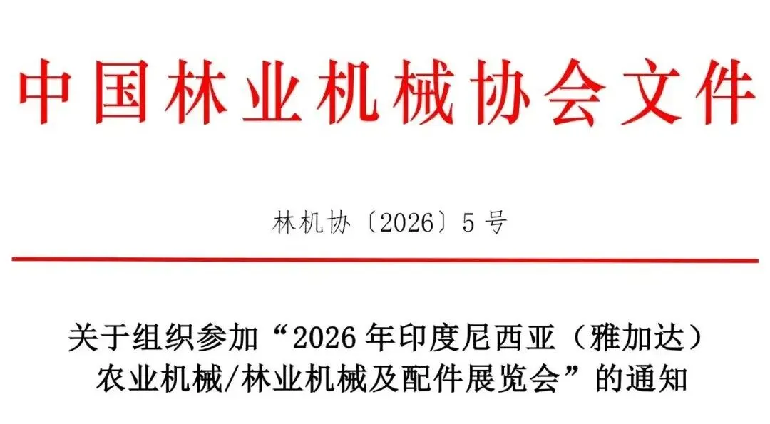 为促进中国与印度尼西亚在农林机械领域的合作,中国林业机械协会决定组织参加“2026年印度尼西亚(雅加达)农业机械/林业机械及配件展览会”(以下简称2026雅加达农林机械展)。具体事项如下: