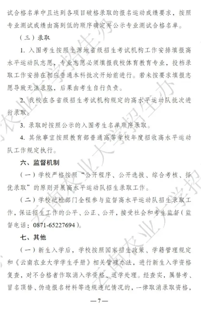 云南农业大学高水平招生简章