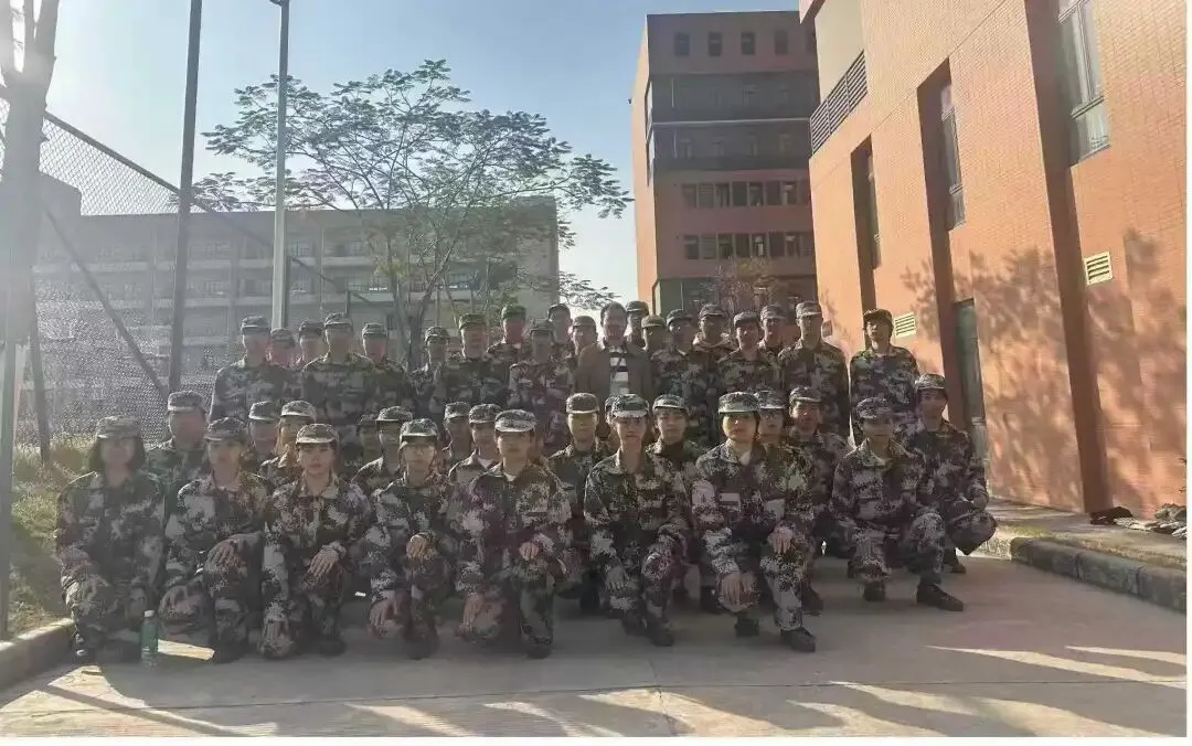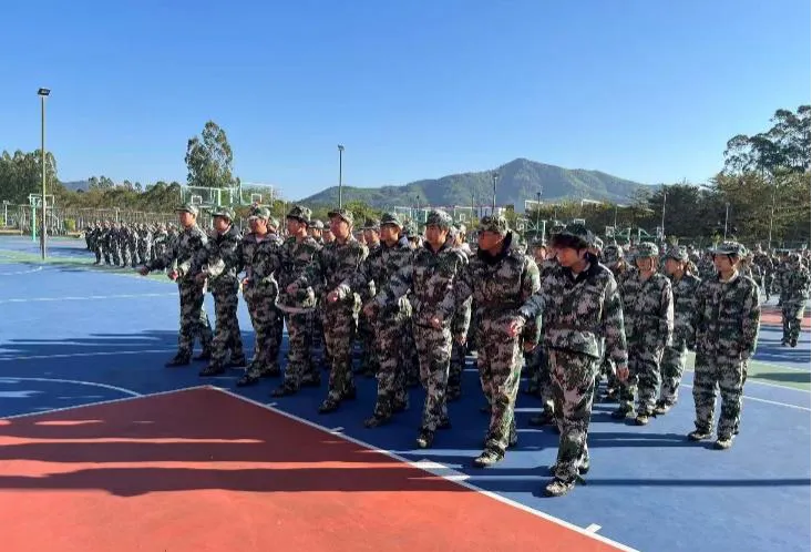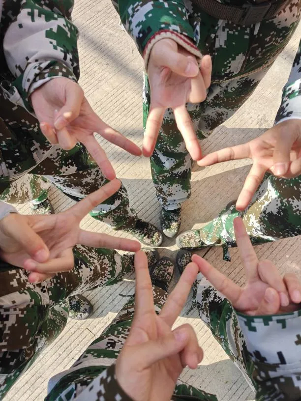 训练的号角在黎明破晓时吹响,直至夜幕降临才停歇,同学们几乎没有片刻喘息。笔挺立正、队列行进、正步训练,每一项科目都是对体能与意志的严峻考验,而每一位同学都决心咬紧牙关、迎难而上。清晨的寒风凛冽刺骨,站军姿时,所有人却都昂首挺胸,下颌微收,双肩平展,身姿挺拔如苍松劲柏般坚韧。午后暖阳洒落,正步动作尚不娴熟的同学主动围在动作标兵身旁,紧盯摆臂高度与踢腿力度反复练习,誓要让每一步都踏出铿锵有力的气势。即便是看似简单的敬礼姿势,也被大家一遍遍地打磨雕琢——指尖必须精准触碰帽檐,手臂要绷成一条笔直的线。无论肌肉有多酸痛,身体有多颤抖,没有一个同学愿意有丝毫松懈。