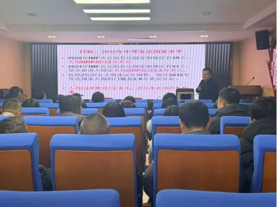 1月15日,鄂尔多斯市林业和草原局东胜区分局召开全体党员大会,专题学习领会党的二十届四中全会精神,凝聚奋进力量。会议由单位党组成员、副局长王韬同志主持,特邀市委党校国家治理教研部主任、副教授钱格祥作题为《奋力开创中国式现代化建设新局面》的专题宣讲报告,单位全体在职党员参加会议。