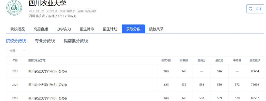 志愿填报|四川农业大学2025年在河北省录取分数线及排名(物理、历史)