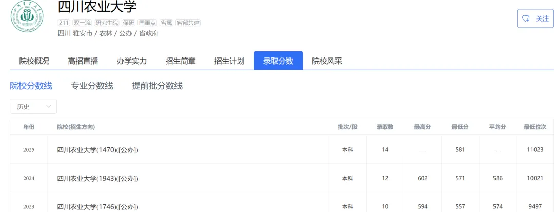 2026年高考志愿填报指南:四川农业大学2025年在河北省物理、历史类各专业组最低录取分数线及位次排名是多少?冀考一点通李老师提醒考生家长:在参考分数时最少要看近三年的数据位次排名进行对比,以下是该院校的具体分数: