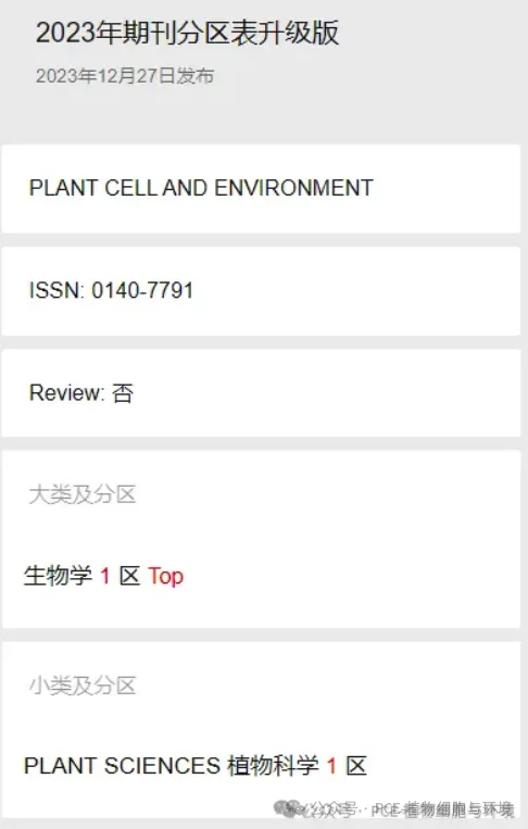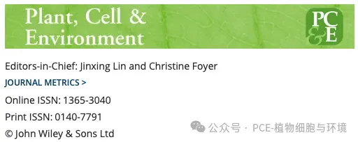 《PCE-植物细胞与环境》公众号是Wiley出版社旗下Plant, Cell and Environment (PCE)期刊的官方平台,旨在聚焦生物技术前沿,关注植物研究最新动态,分享PCE期刊、高水平期刊最新植物研究成果以及科技新闻等。PCE期刊作为植物科学方向的领军期刊(JCR植物科学1区,中国科学院期刊分区表生物学1区Top,植物科学1区),深入研究植物对环境的响应方式,广泛涵盖了从分子层面到群落水平的生物学、生理学和生态学等因素,涵盖植物生物化学、分子生物学、生物物理学、细胞生理学、整体植物生理学、作物生理学和生理生态学,以及与植物功能相关的结构、遗传、病理和气象方面的研究。该期刊专注于发表最高质量的相关理论或实验文章和原创研究,因其能在植物科学领域中提供研究者们全新见解的特点而备受推崇。期刊由英国著名植物生理学家Harry Smith教授于1978年创立,由北京林业大学林金星教授和英国伯明翰大学 ChristineFoyer教授担任主编。