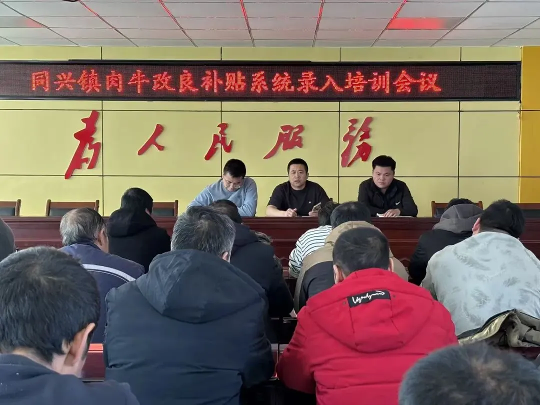 为深入贯彻落实畜牧产业转型升级的决策部署,切实筑牢动物防疫安全防线、提升家畜改良成效、规范补贴政策落地,1月16日上午,同兴镇召开肉牛改良补贴系统录入培训会议、病死畜无害化处理宣传部署会议、家畜改良安排部署会议,镇分管领导、畜牧工作骨干、各村改良技术员等30余人参会,以“三会联动”的务实举措,为全镇畜牧业高质量发展注入强劲动力。