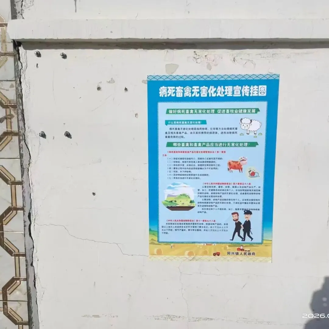 病死畜无害化处理宣传部署会议传达了上级关于病死畜禽无害化处理的最新政策要求,强调无害化处理是维护公共卫生安全、生态环境安全和畜产品质量安全的关键举措。会议明确养殖场(户)落实主体责任,严格执行病死畜“不抛不弃、及时上报、规范处置”要求。同时部署开展全方位宣传工作,通过悬挂横幅、张贴宣传挂图等方式,普及无害化处理流程及随意丢弃的法律后果,引导养殖户主动参与规范处置,筑牢畜牧业安全与生态保护双重防线。