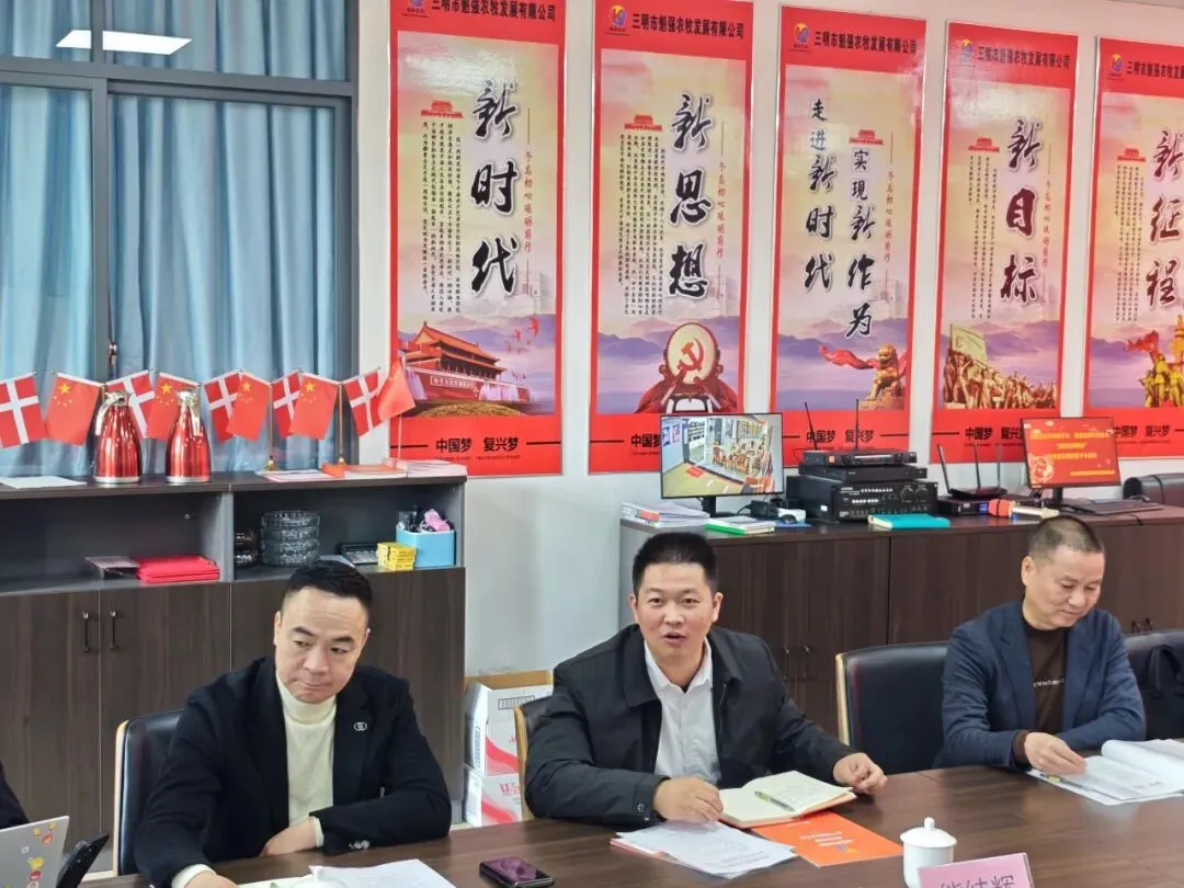 座谈会上,魁强农牧总经理吴光强对专家团的到来表示热烈欢迎并介绍了公司的发展情况,他表示魁强农牧成立于2009年,是从一个散养户开始创业,公司于2017年收购三姑厂(存栏1500头母猪),经历了非洲猪瘟顽强的生存,于2020年收购了福建金盛养殖有限公司(存栏2000头母猪),2024年开始在欧美考察最终定了进口丹麦基因种猪的战略发展方向。魁强农牧未来的发展核心将以进口的丹麦基因种猪为基础,应用全基因组选育技术选育更加符合中国未来养猪业需求的具备高繁殖力、生长速度快、料肉比低的高健康高品质种猪。