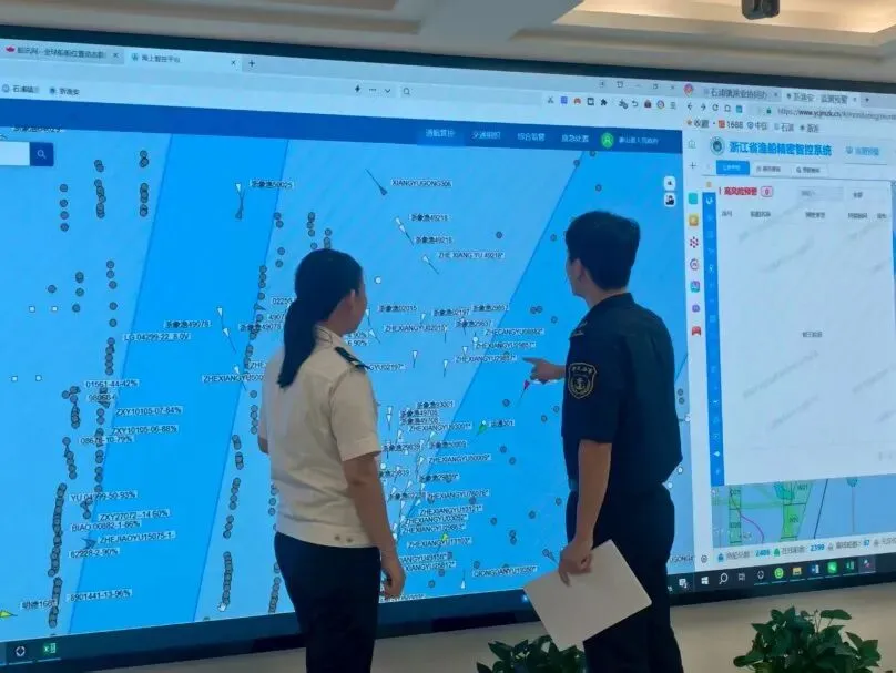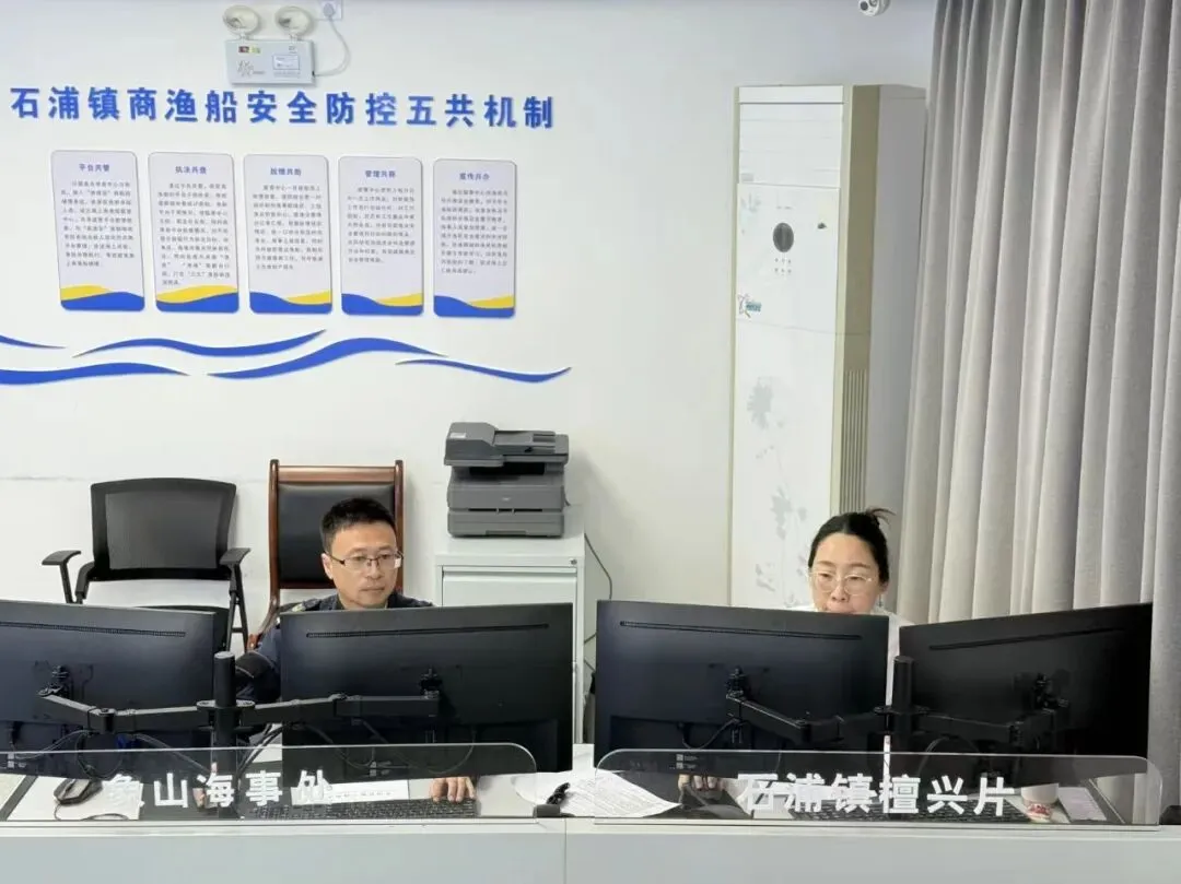 通过远程智慧监管筑牢“千里防线”,现场巡查更能精准发力补强短板。象山海事处联合渔业部门组建联合巡航执法组,安排“海巡0717”“海巡22”等主力船艇与“中国渔政33033”“中国渔政33208”组成“护航搭档”, 依托 “VTS+海巡艇+无人机”立体监管模式,重点巡查南韭山、檀头山周边公共航路、下湾门航道等商渔船密集交汇水域,精准排查渔船航路内作业、抛锚、违规设置生产用具、安全设备缺失等问题,现场督促整改。