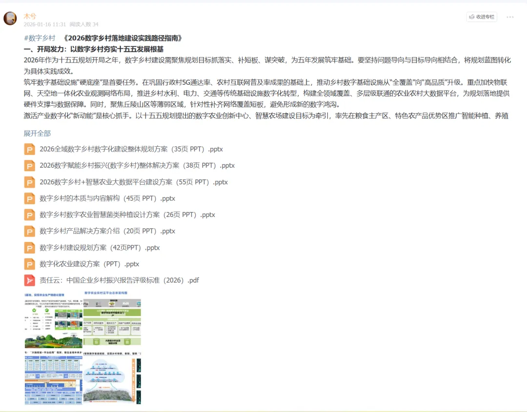 (【数智行业·领地】星球,搜索“数字乡村+智慧农业”标签方案完整版)苹果用户公众号回复“1”加木兮或者直接加木兮(MuxiYuebao0920),享受优惠,加入星球~