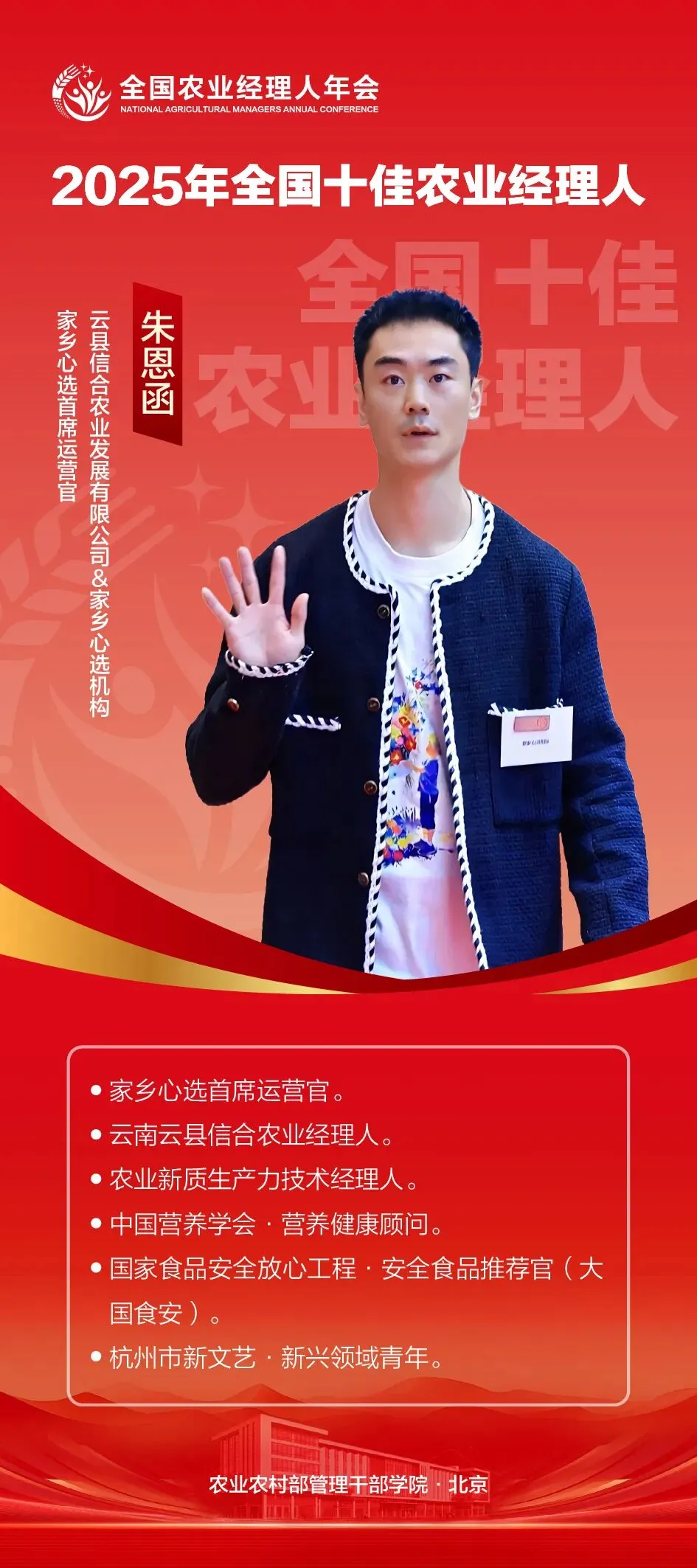 朱恩函以双平台协同发力,推动农业产业数字化升级。云县信合农业作为云南省农业产业化重点龙头企业,推广中药材种植超35万亩,下设3个合作社,辐射5000户农户2.1万人,建成省级绿色产业基地等多个特色基地,采用“公司+合作社+基地+农户+互联网”模式,带动产值数亿元。