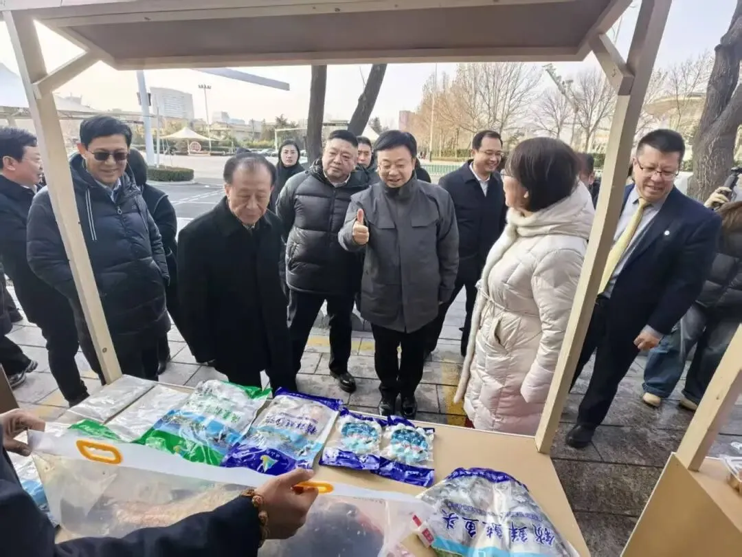 活动结束后,与会领导在促销费市集巡展中,市委书记刘运为“峡山湖有机鱼”点赞。
