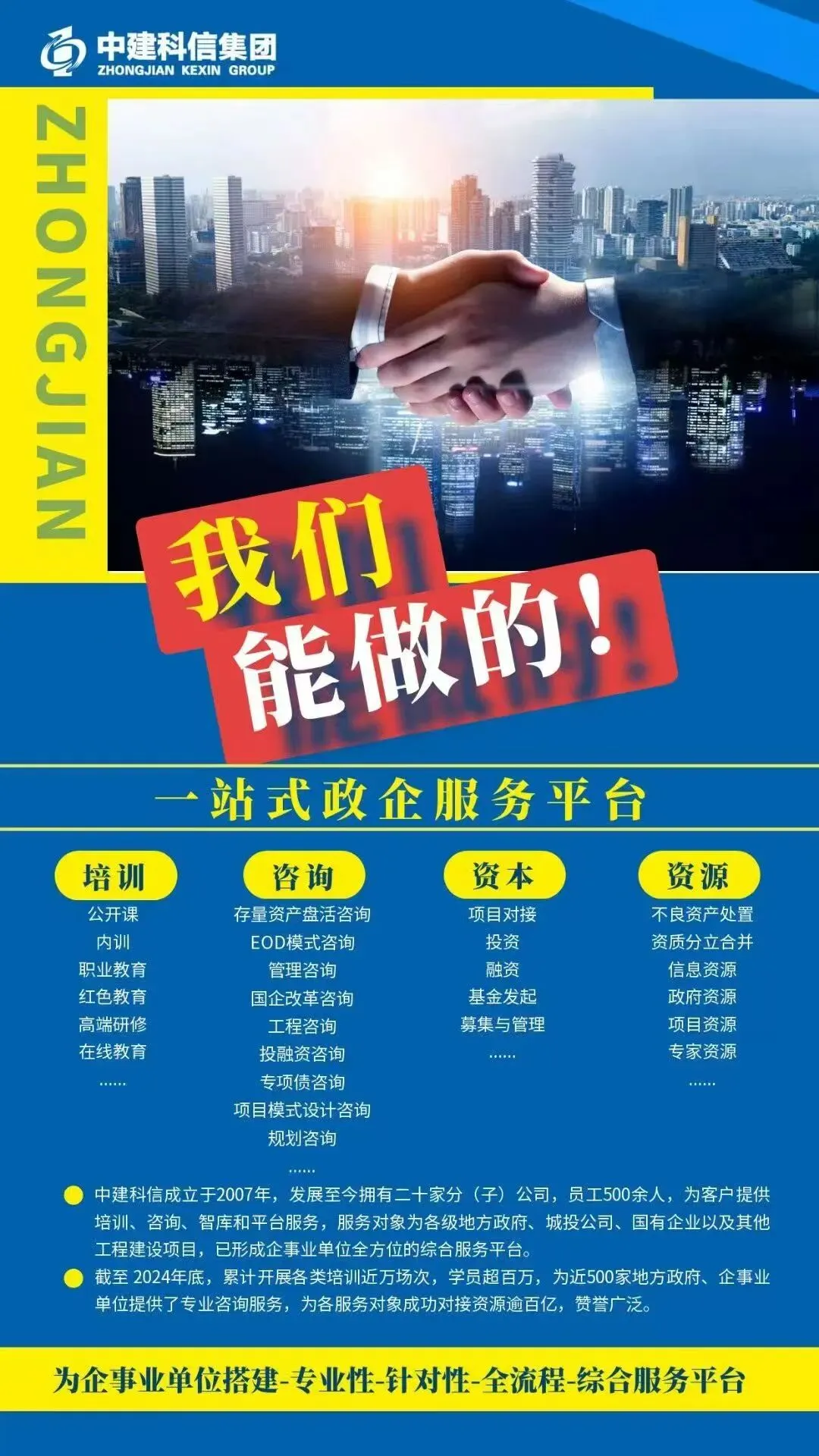 为各企事业提供——国央企混改民营企业、政府融资平台转型、债务化解、国债申报、城市更新咨询与服务、混改、国企改革系列包装咨询谋划服务、建筑工程领域、十五五规划编制服务、专项债券发行咨询与服务、产业基金、PPP项目及数据入表质押融资贷款增信、等服务等,欢迎咨询。本单位具备完整的战略规划、法人治理结构、集团管控、业务流程、人力资源管理,等一体化系统咨询能力。(声明:丨文章来源乡策方公众号,版权归作者所有,如有侵权,敬请联络小编)