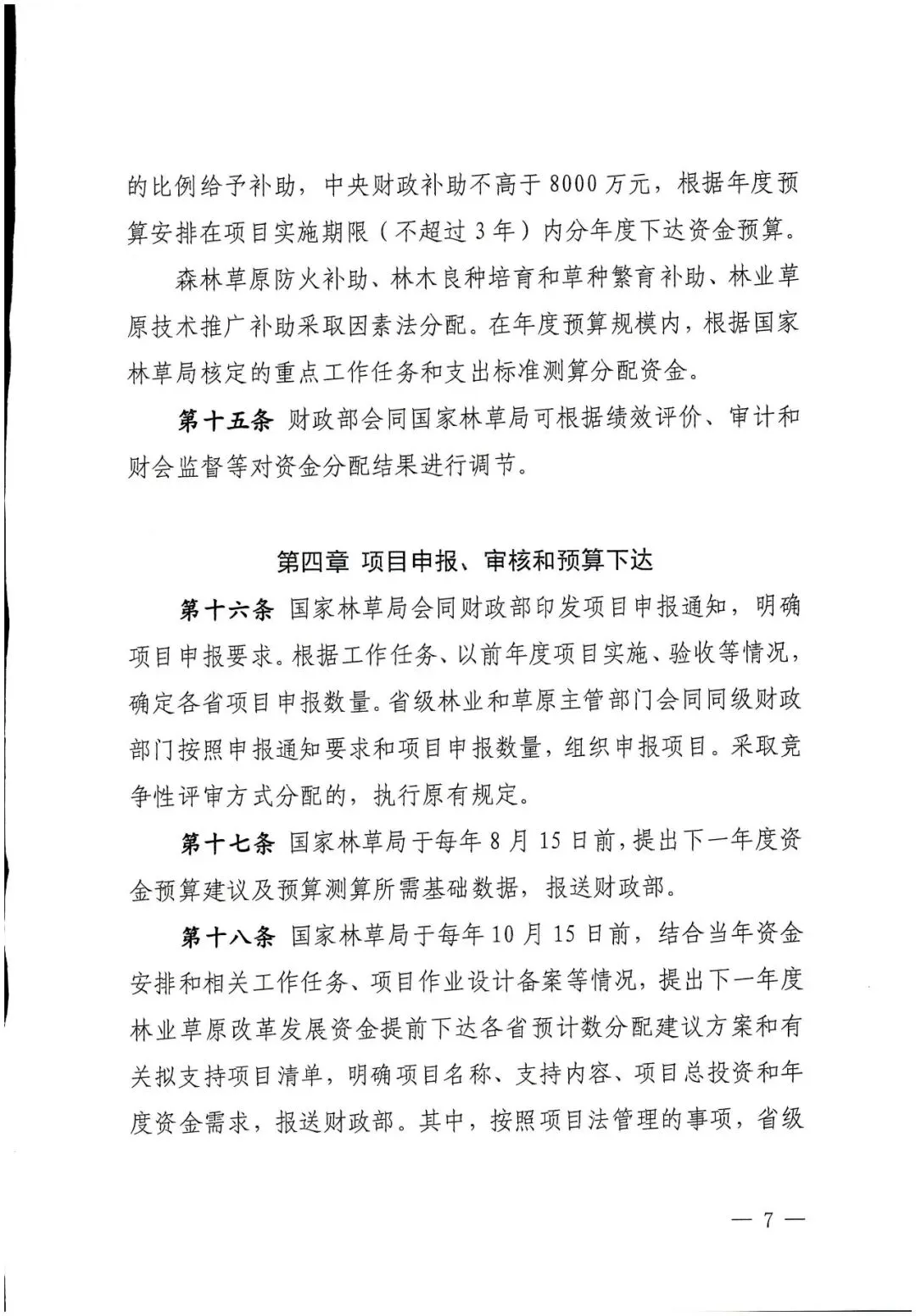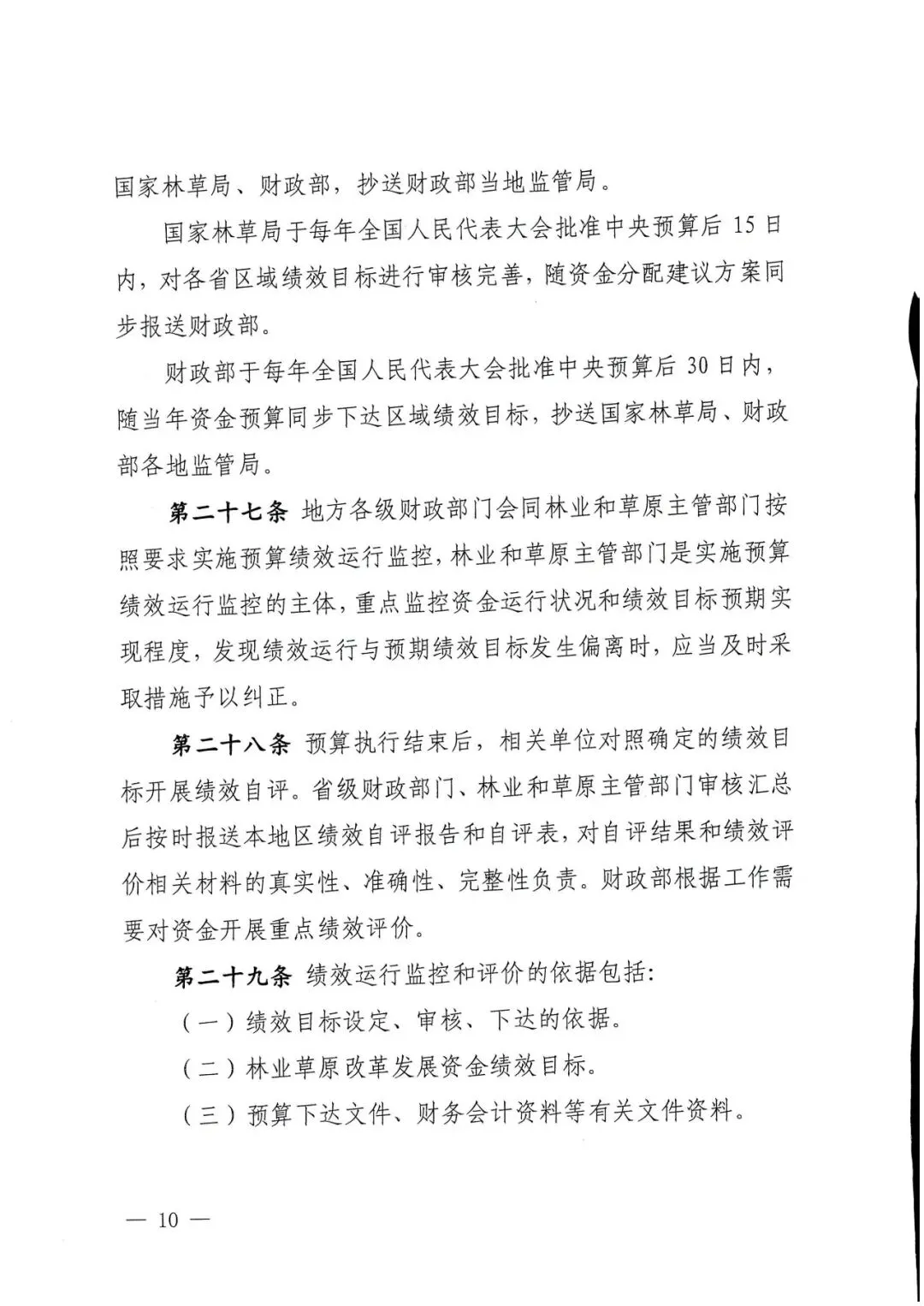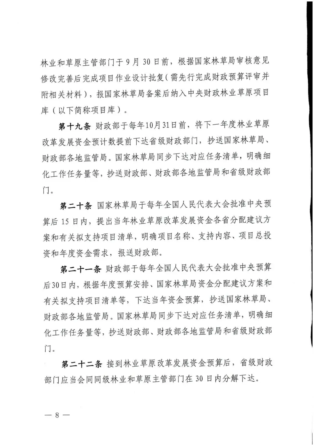为进一步规范和加强中央财政林业草原改革发展资金管理,财政部、国家林草局对《林业草原改革发展资金管理办法》进行了修订。现予印发,请遵照执行。