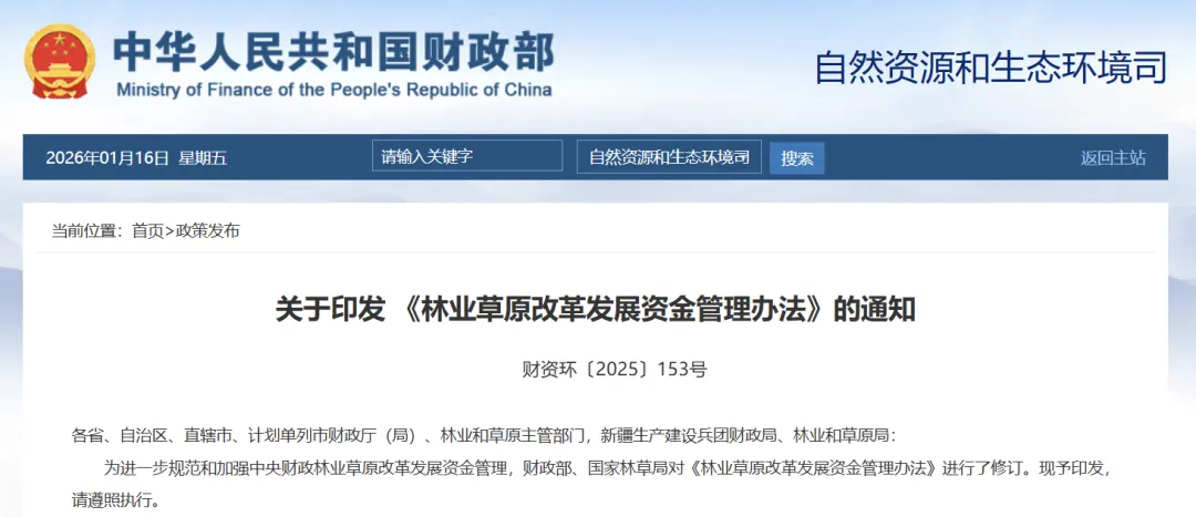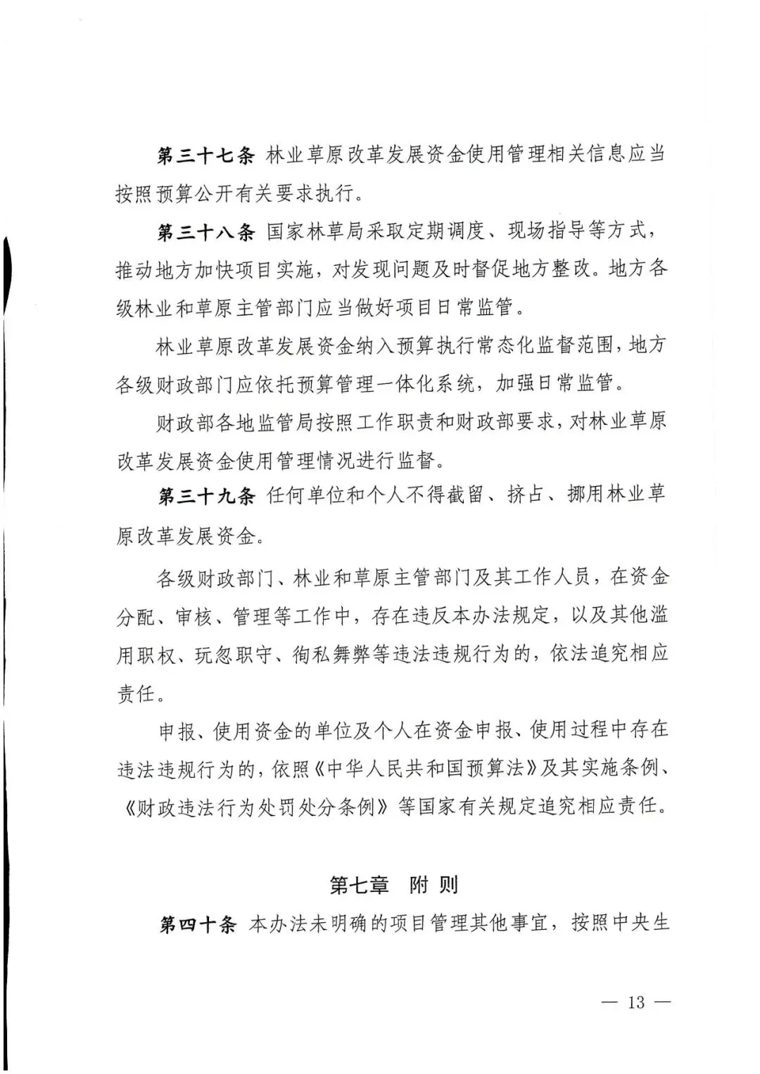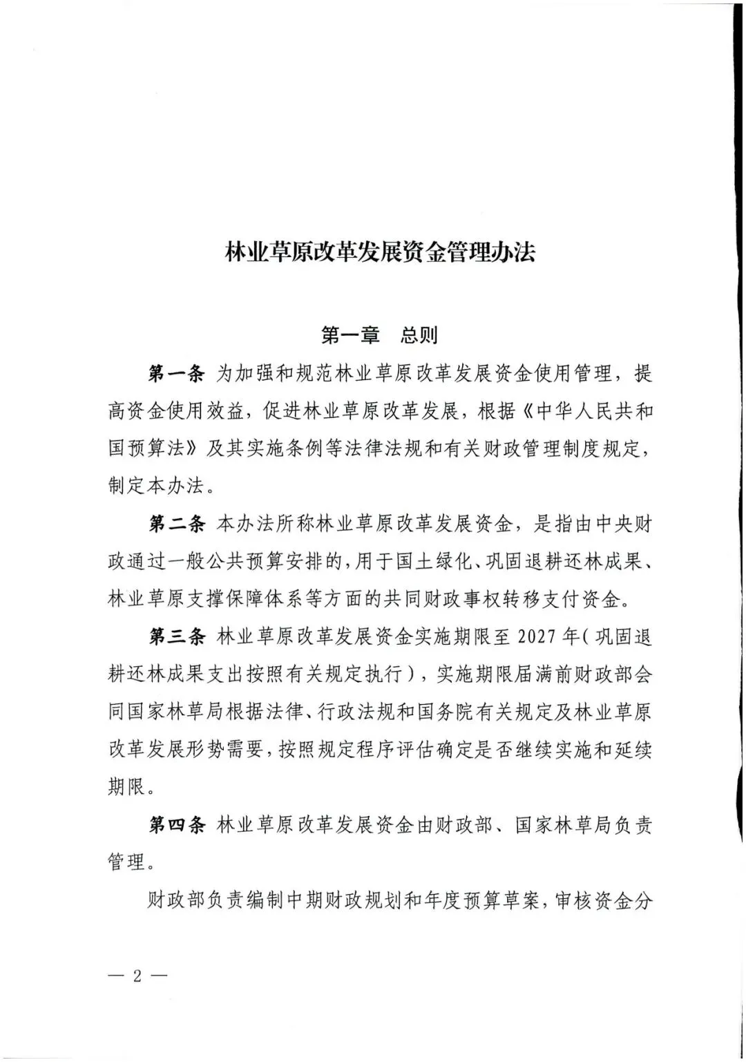 为进一步规范和加强中央财政林业草原改革发展资金管理,财政部、国家林草局对《林业草原改革发展资金管理办法》进行了修订。现予印发,请遵照执行。