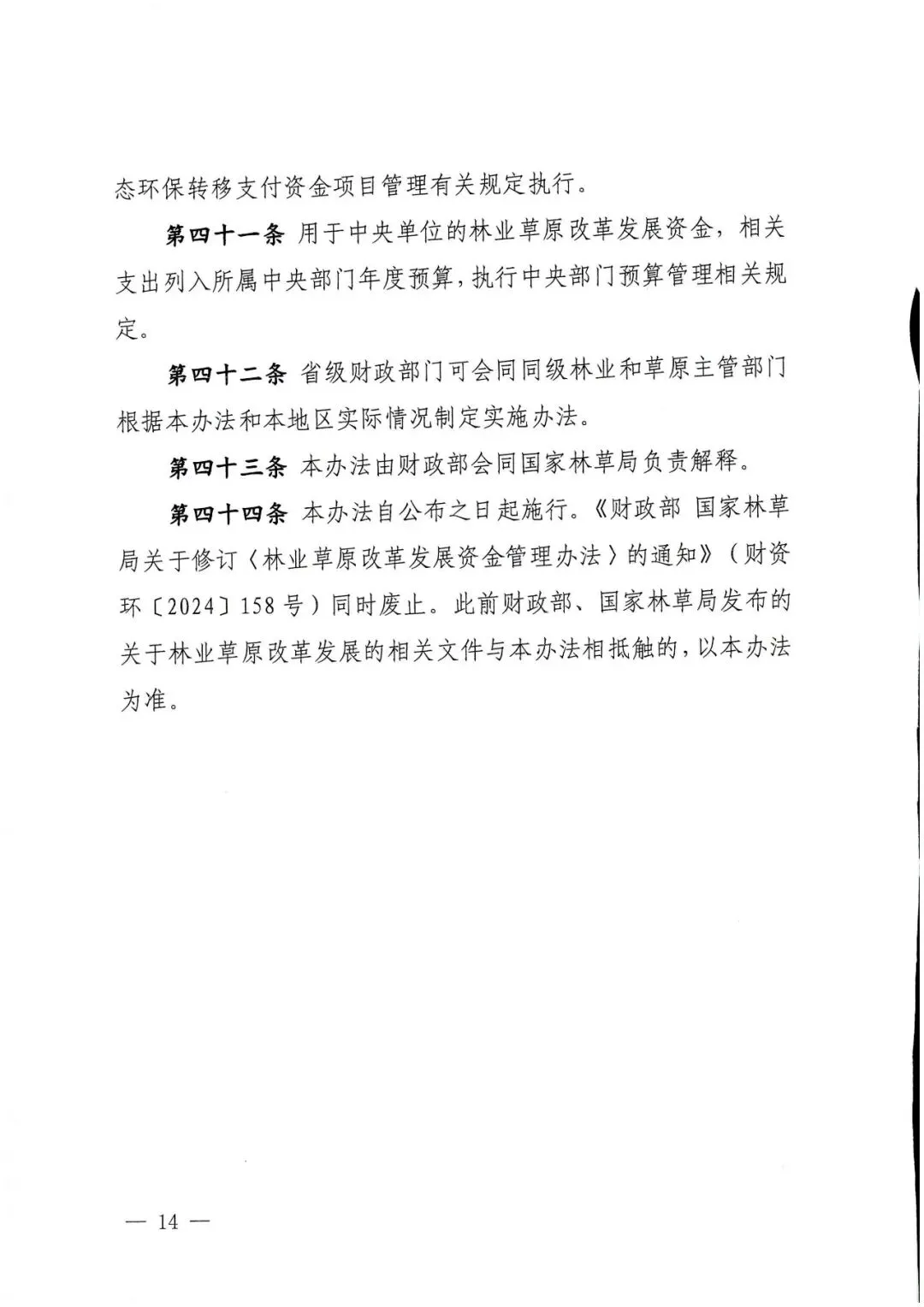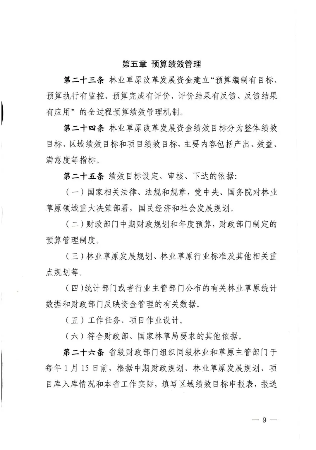 关于印发 《林业草原改革发展资金管理办法》的通知