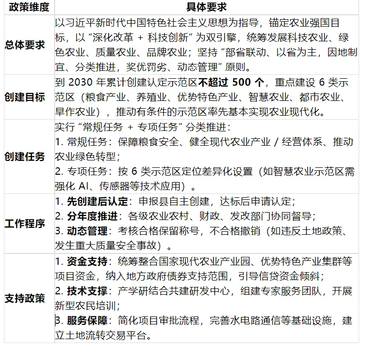 - 政策定位:加快推进农业现代化的顶层设计文件,将示范区作为农业强国建设的 “实践样板” 和 “试验田”。