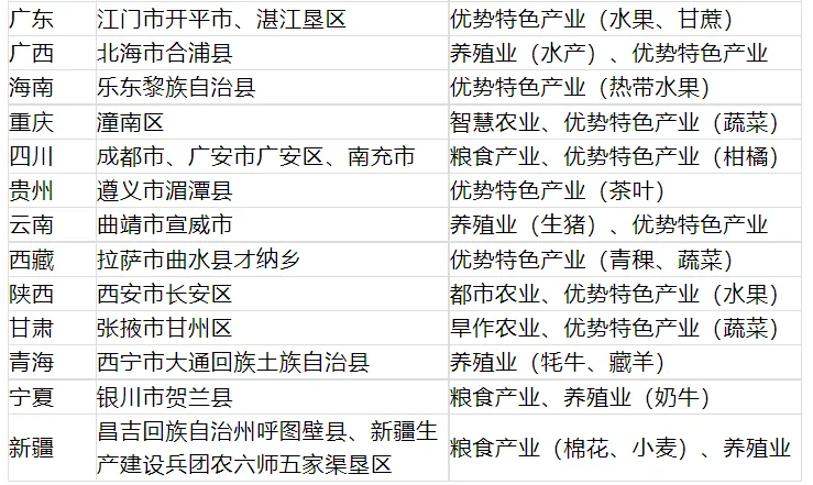 - 国家现代农业产业园、优势特色产业集群、农业产业强镇所在县;