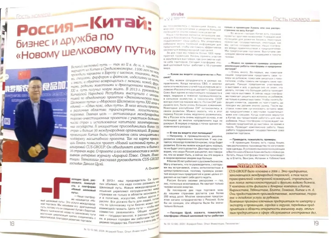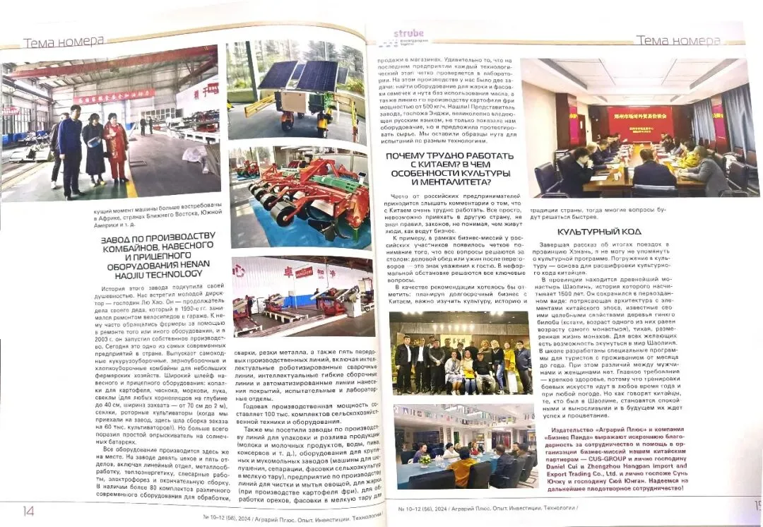朋友们,有个好消息要和大家分享——俄罗斯最具影响力的专业农业杂志《Аграрий Плюс》(农业家+)每月印发超万册的封面人物,正是我们的团队!